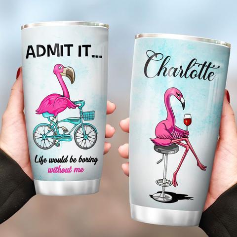 Flamingo Riding Bike Personalized Stainless Steel Tumbler, Personalized Tumblers, Tumbler Cups, Custom Tumblers