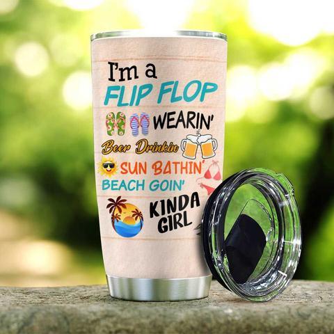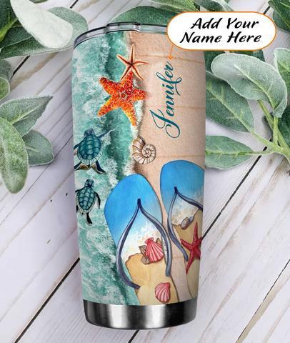 Flip Flop Beach With Turtle Personalized Kd2 Stainless Steel Tumbler, Personalized Tumblers, Tumbler Cups, Custom Tumblers