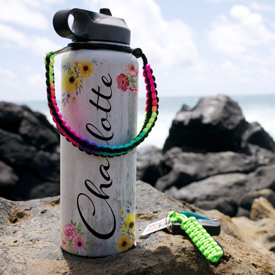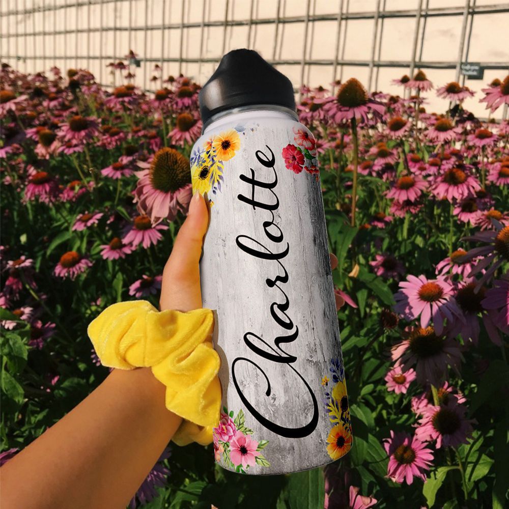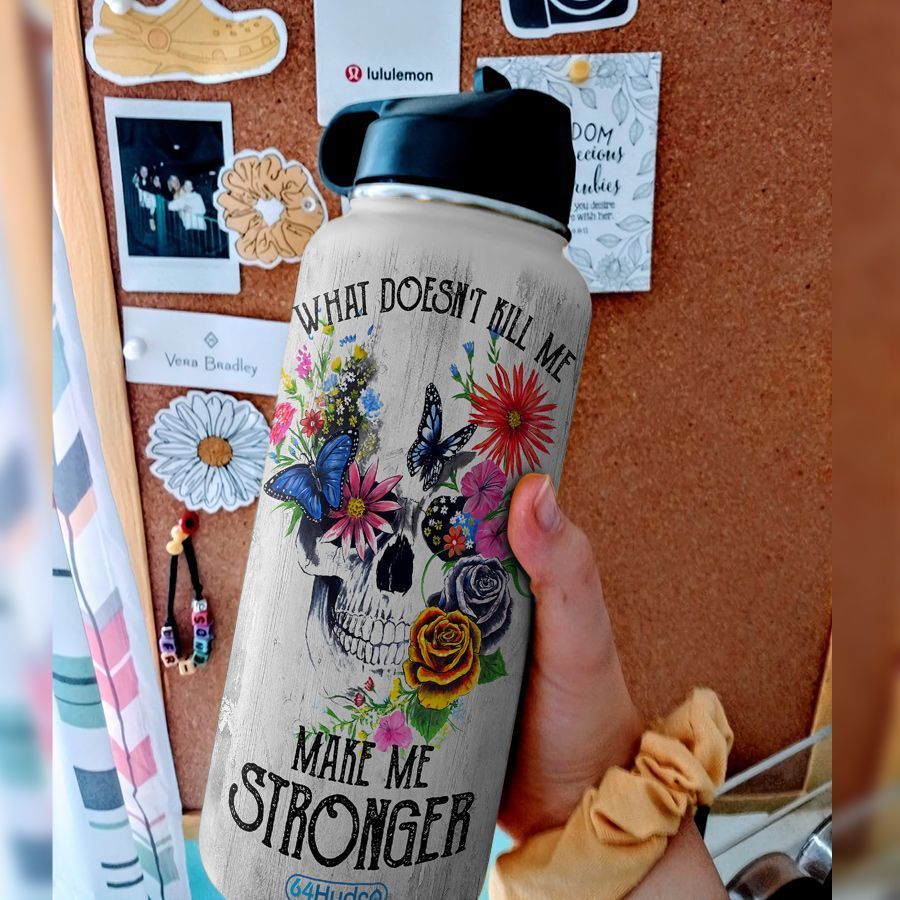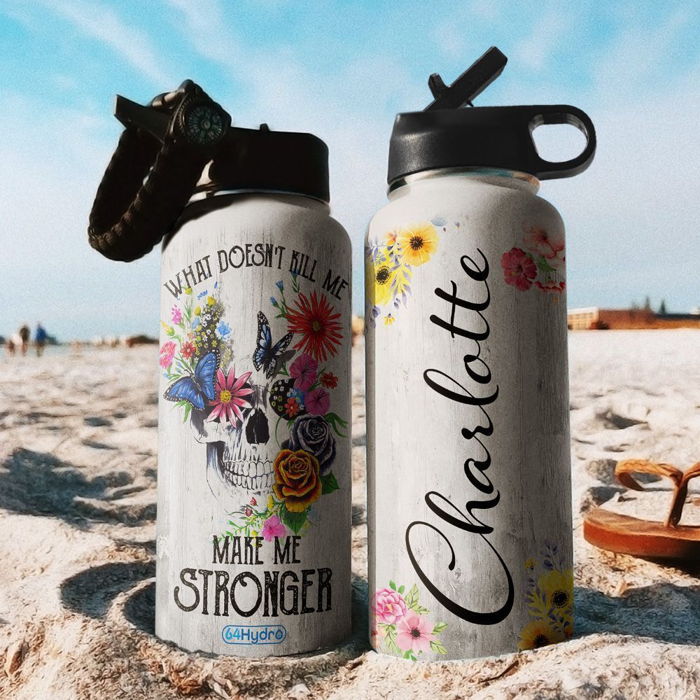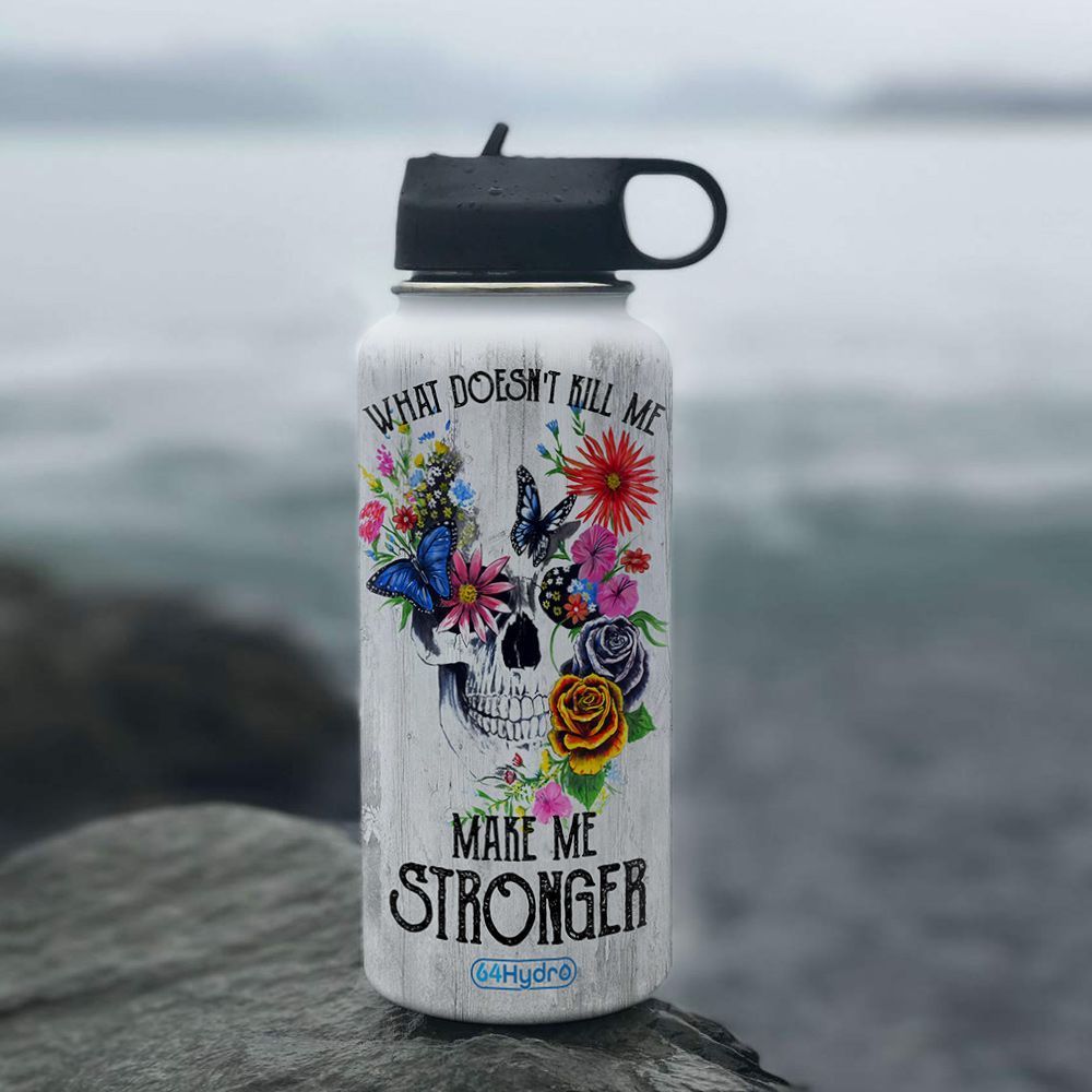 Flower Skull Personalized Htr0909008 Stainless Steel Bottle With Straw Lid