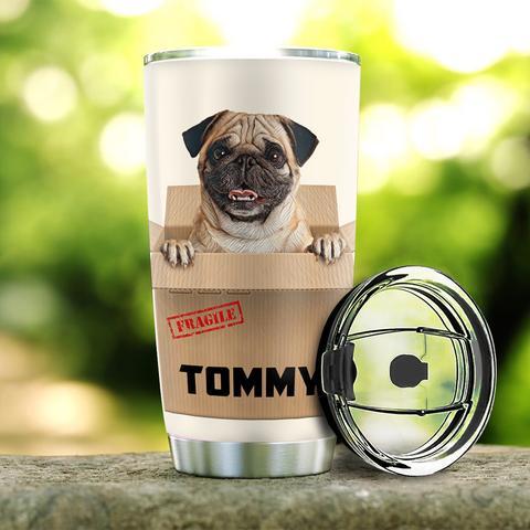 Fragile Pug Personalized Stainless Steel Tumbler, Personalized Tumblers, Tumbler Cups, Custom Tumblers