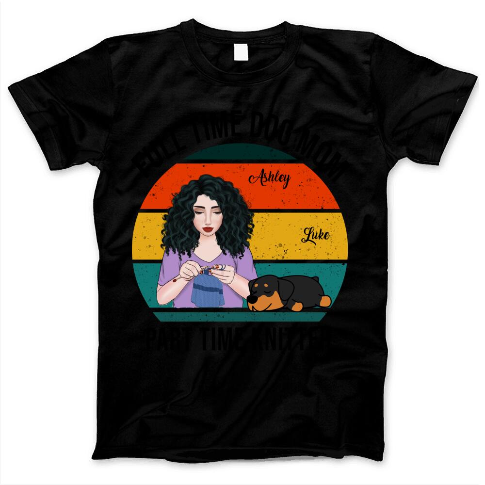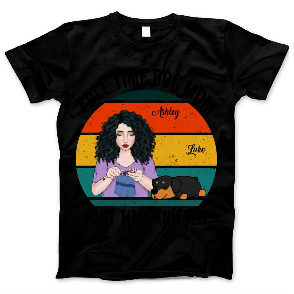 Full Time Dog Mom Mother’s Day Gift For Mom Knitter Knitting Dog Lovers Custom Style, Name & Cat Personalized T-shirt