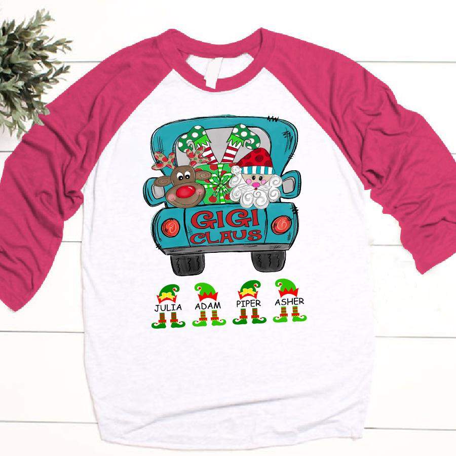 Gigi Claus Christmas Truck | Personalized Baseball T-shirt