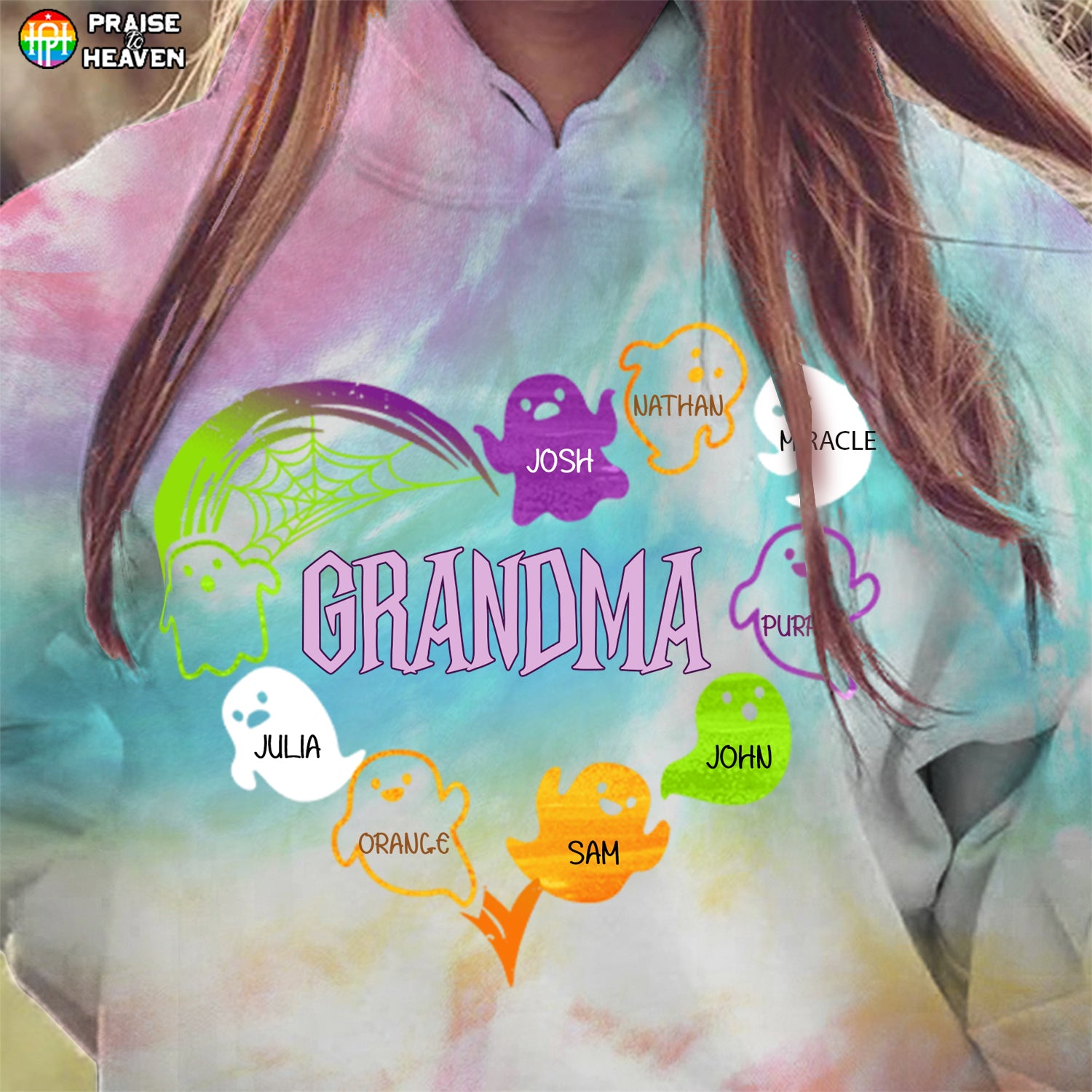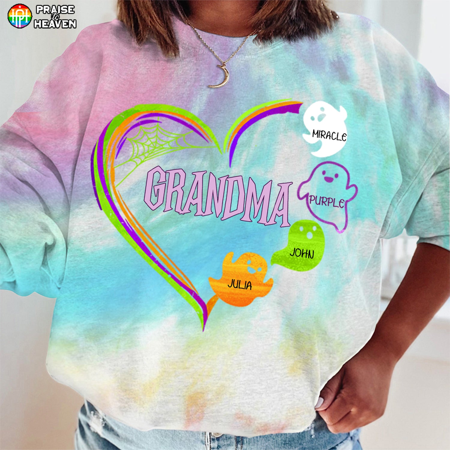 Grandma Boo Crew Heart Personalized 3D Tie Dye Shirt Sweatshirt Hoodie Ap359