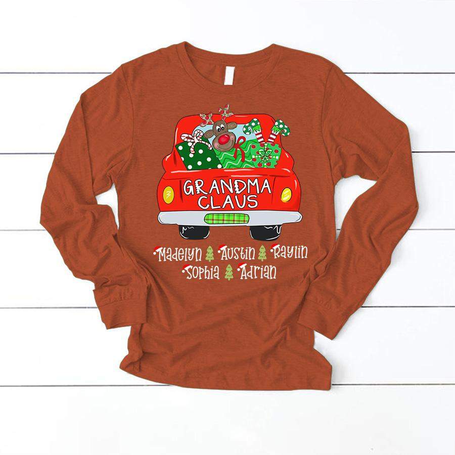 Grandma Claus Red Truck Christmas | Personalized Long Sleeve T-Shirt