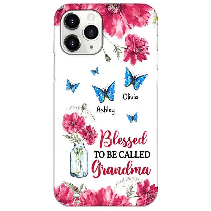Grandma Gift Protective Case Butterfly Kids Grandma Flower Personalized Phone Case