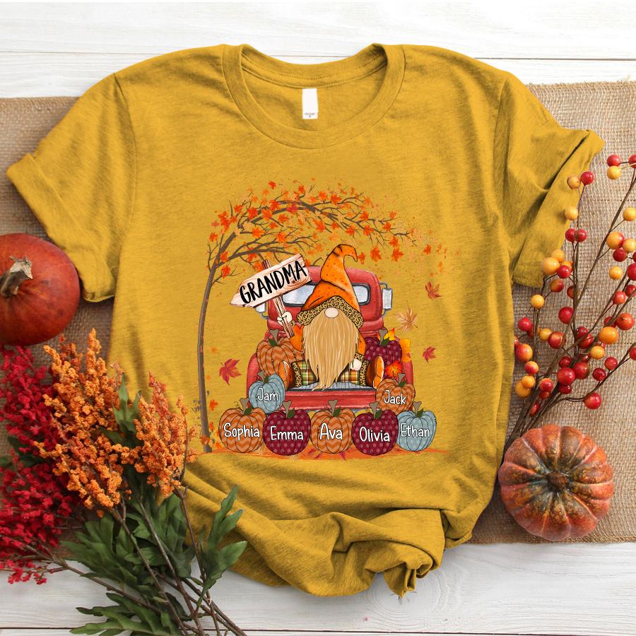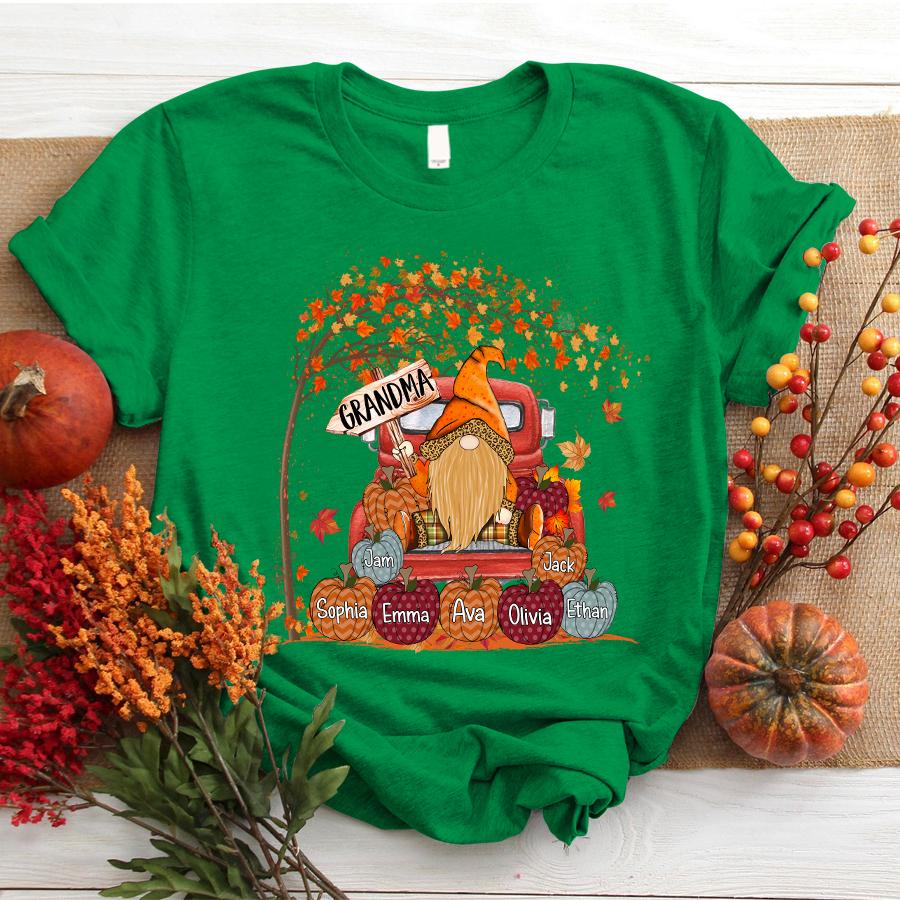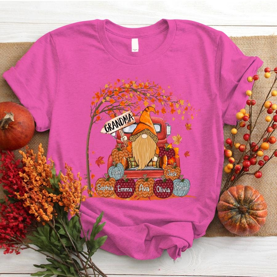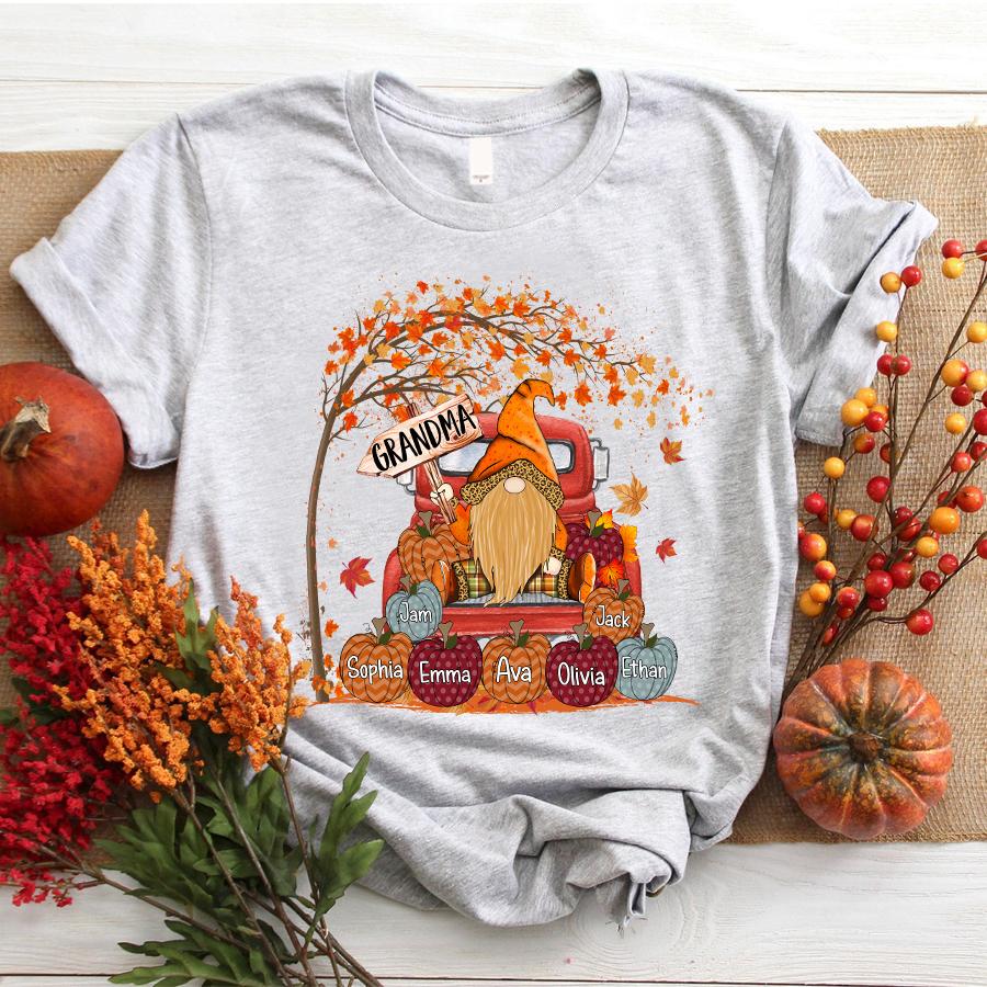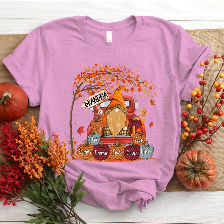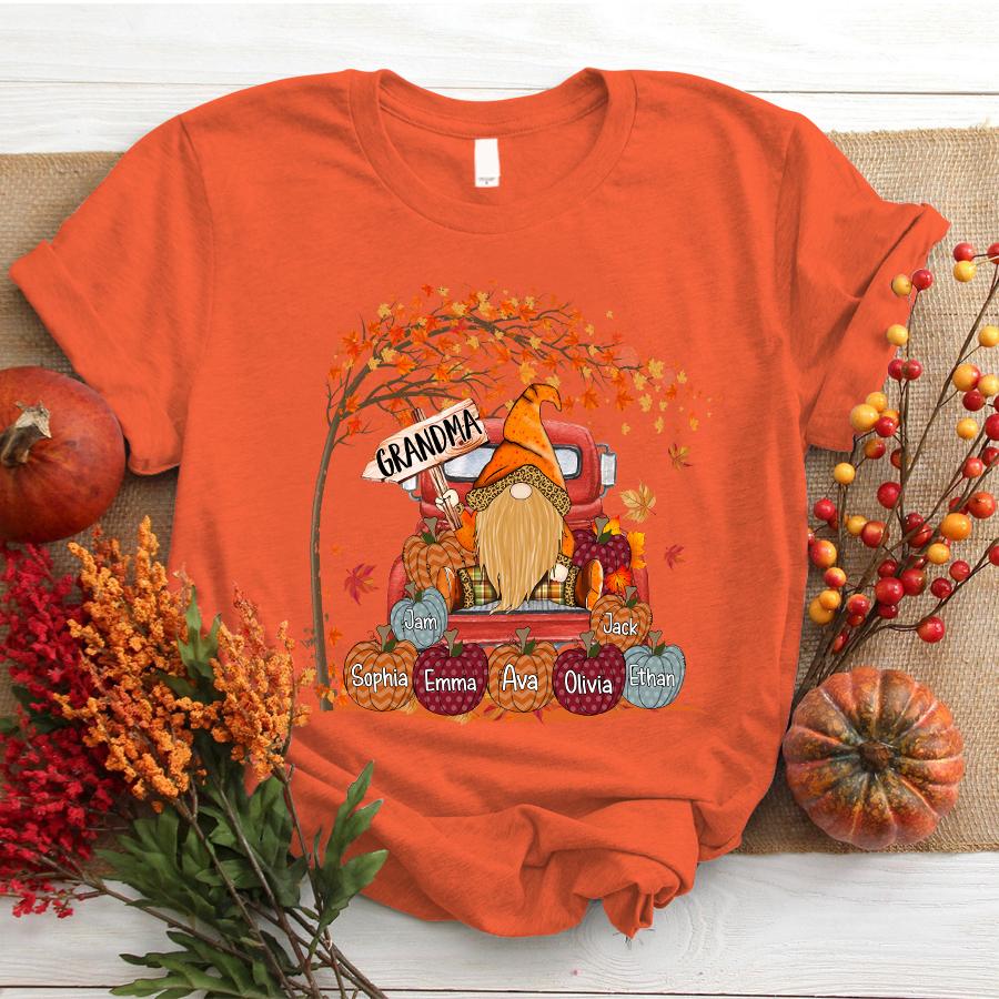 Grandma Gnome Truck Pumpkin Autumn Shirt, Personalized Grandkids Names Shirt Gift