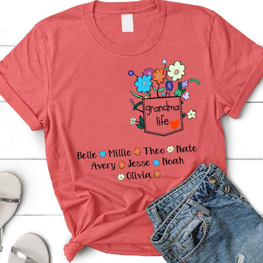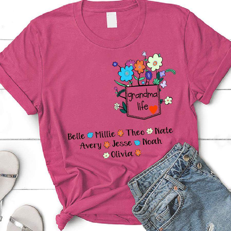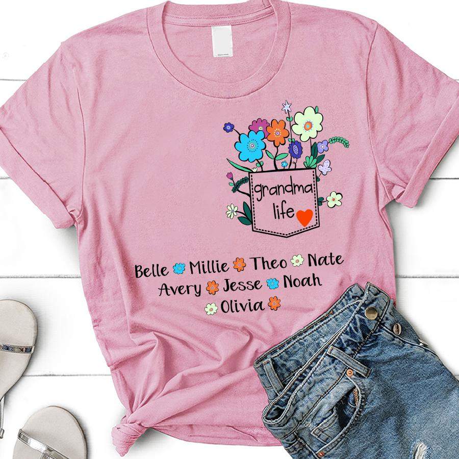 So whether you're looking to show off your own name or create a personalized gift for someone special, LateAndLow Store has got you covered. Start designing your own custom Grandma Life – Pocket | Personalized T-shirt print-on-demand product today, and let us bring your vision to life!