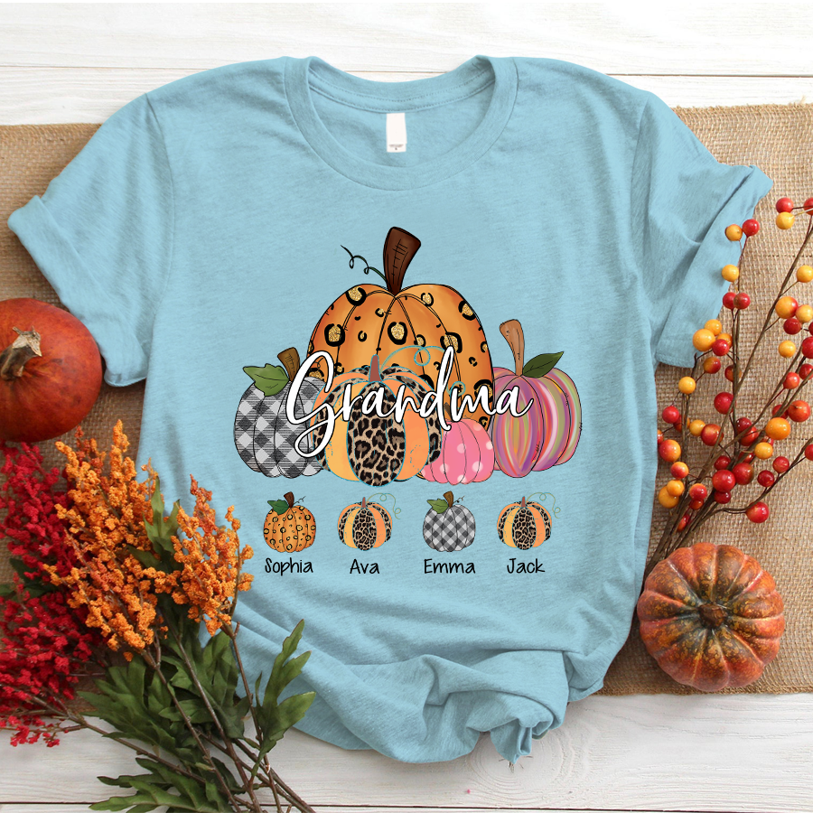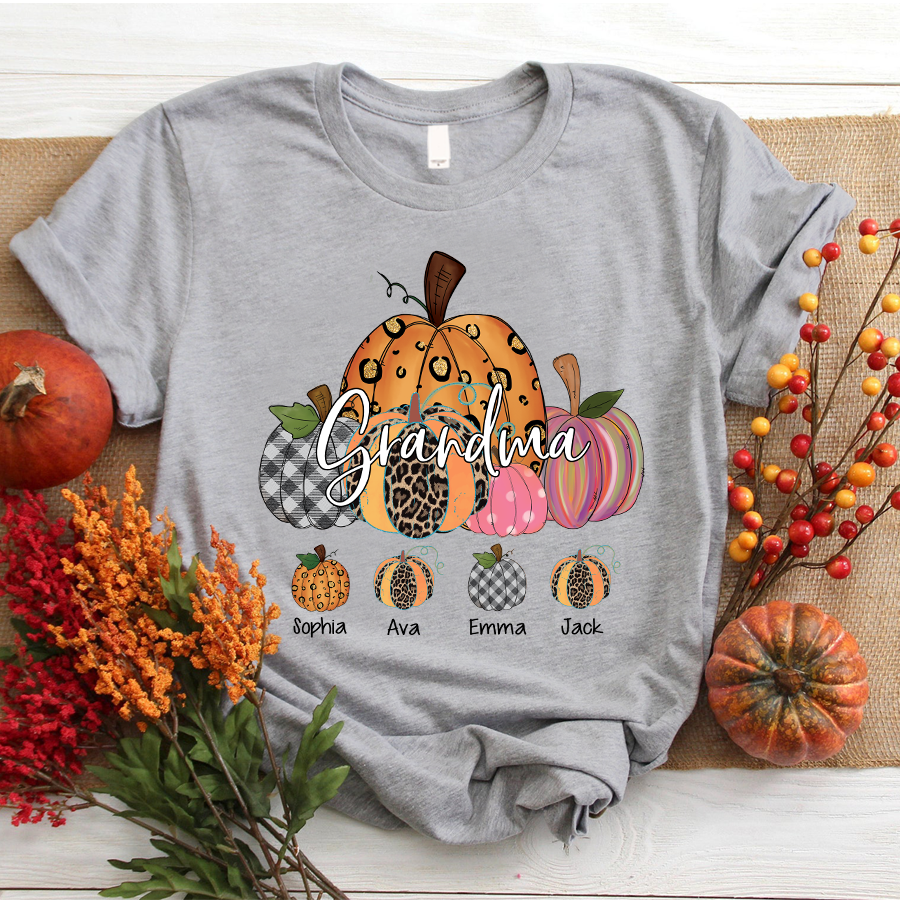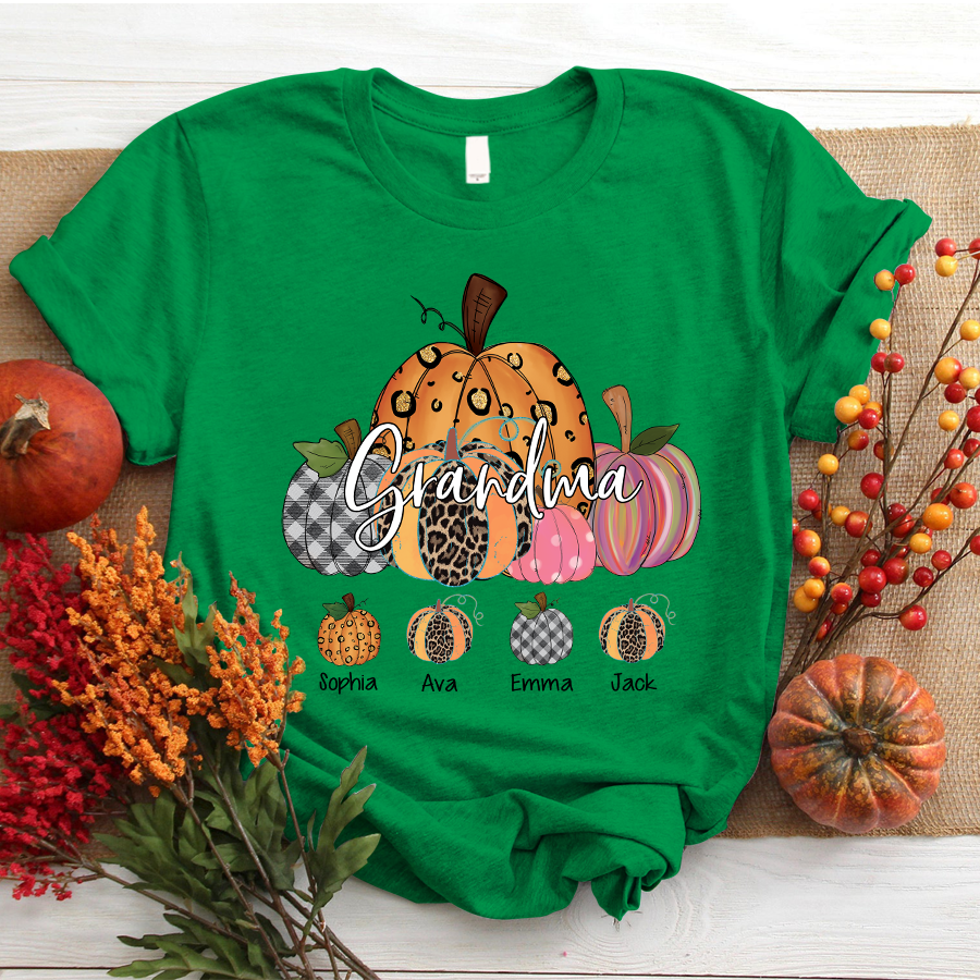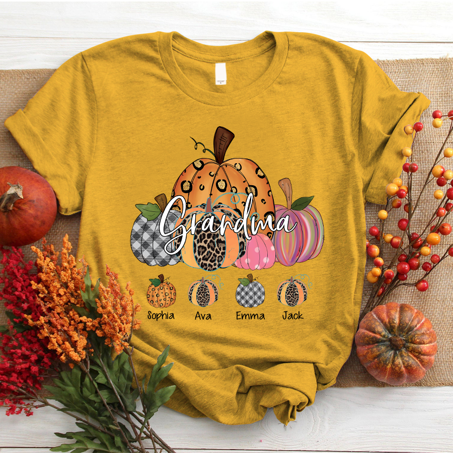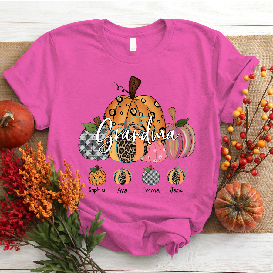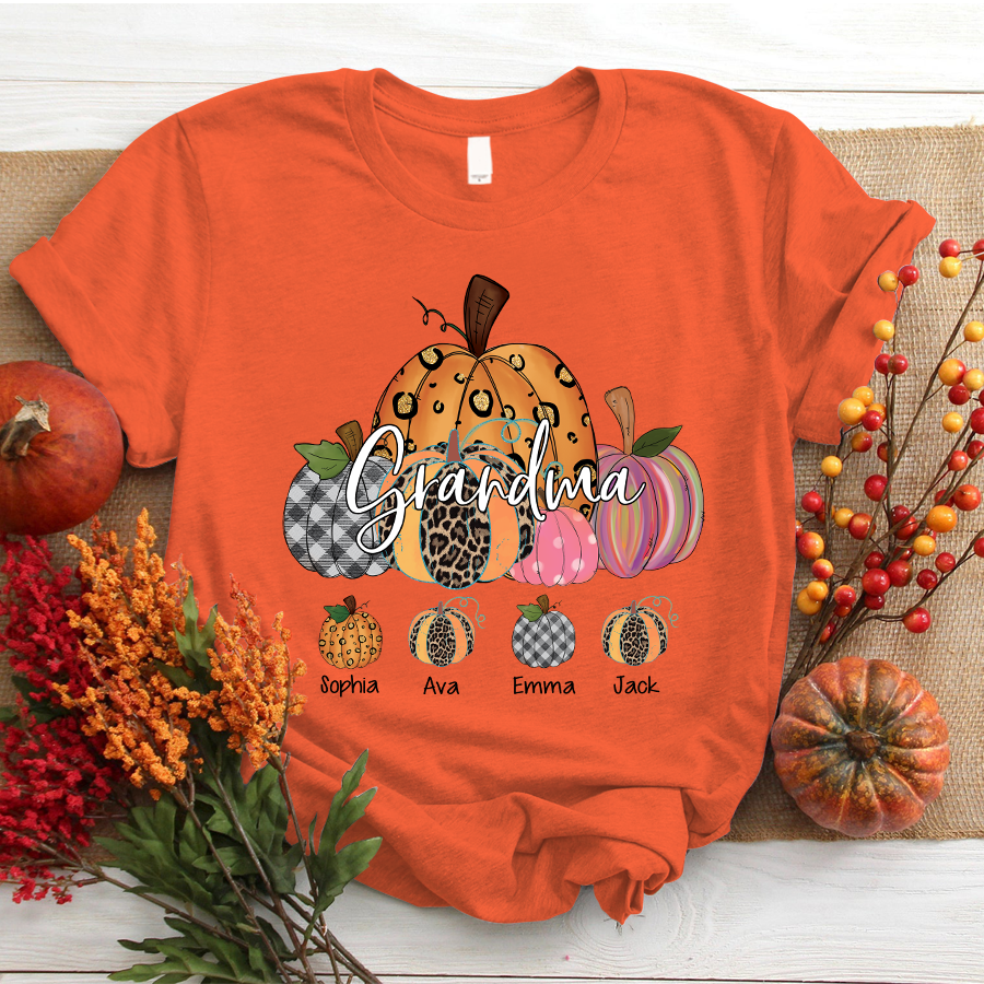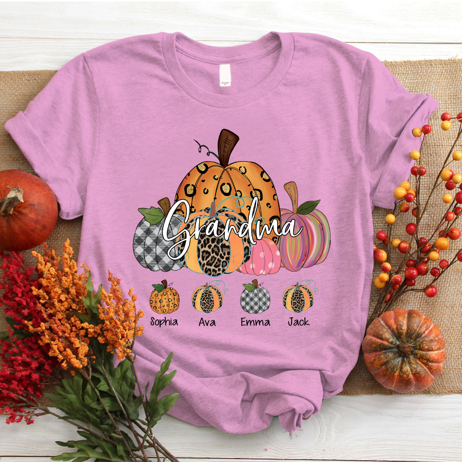 Grandma Pumpkin Art Personalized Grandkids Names Shirt Gift