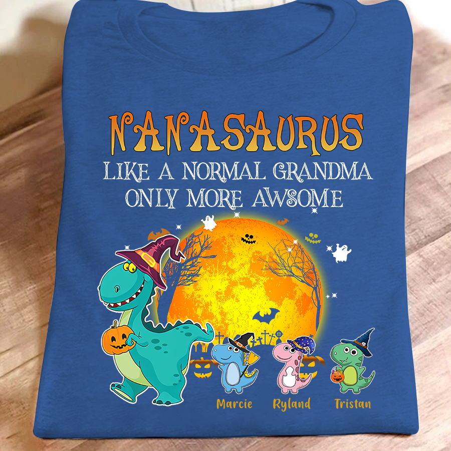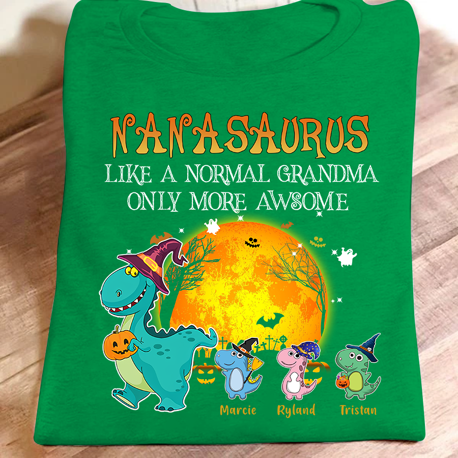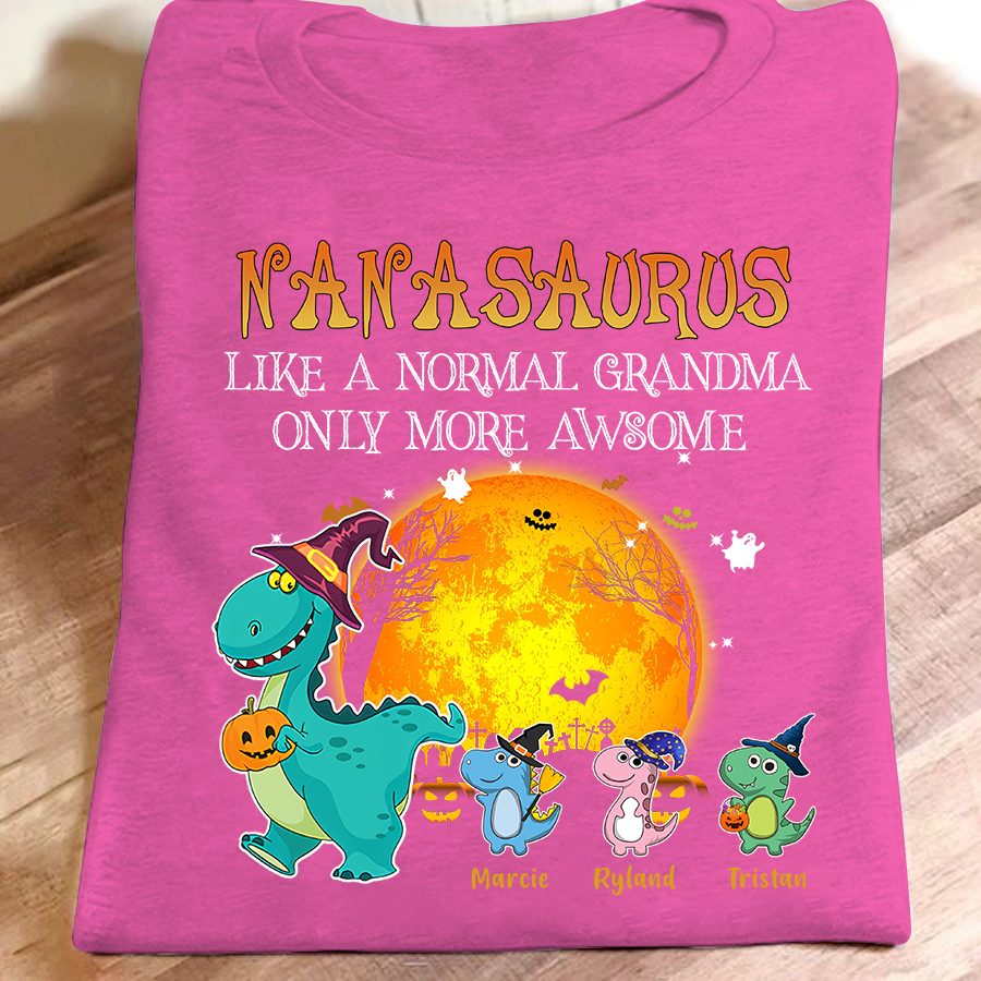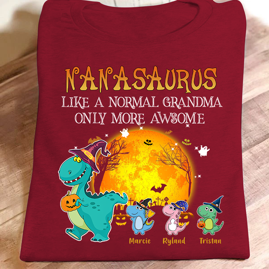 Grandma Saurus – Like A Normal Grandma Halloween Personalized Grandkids Name Tshirt Gift