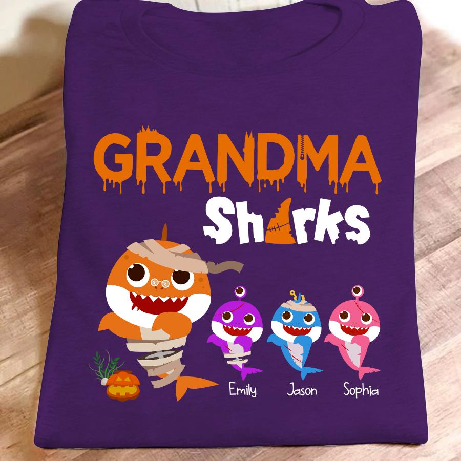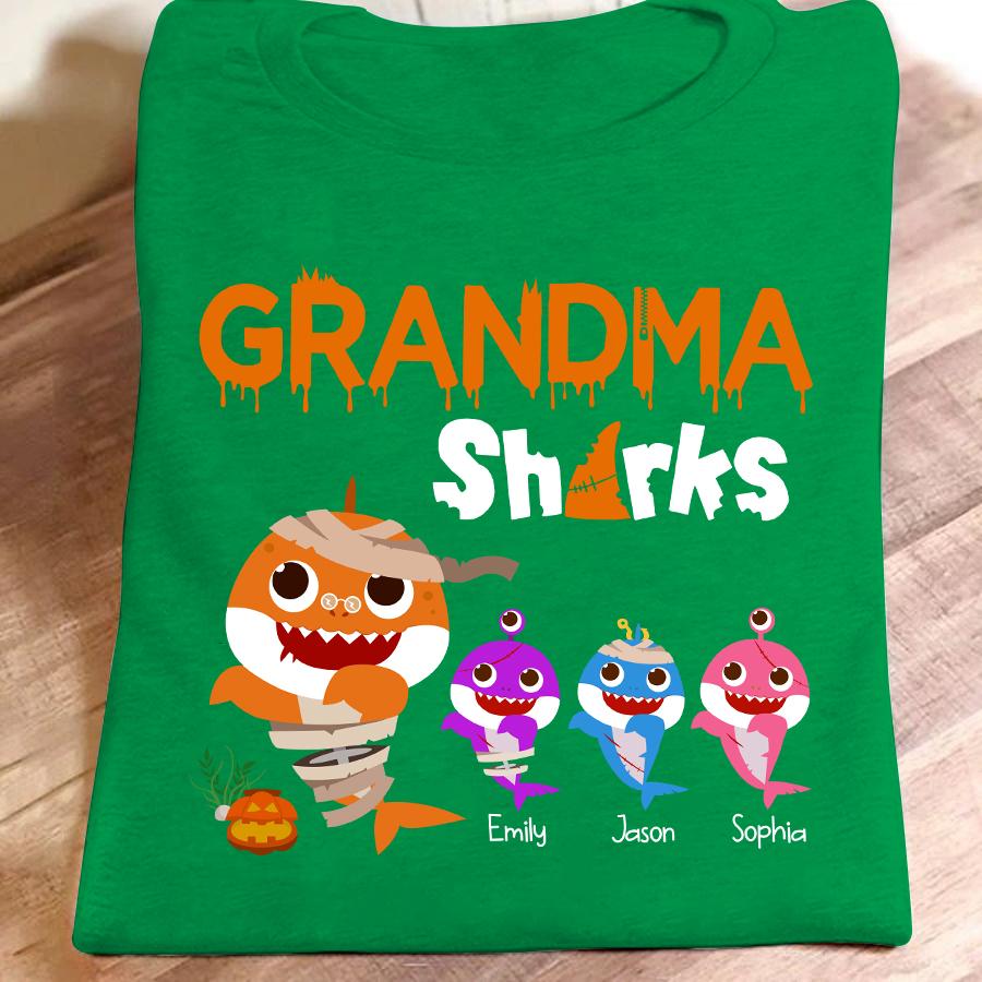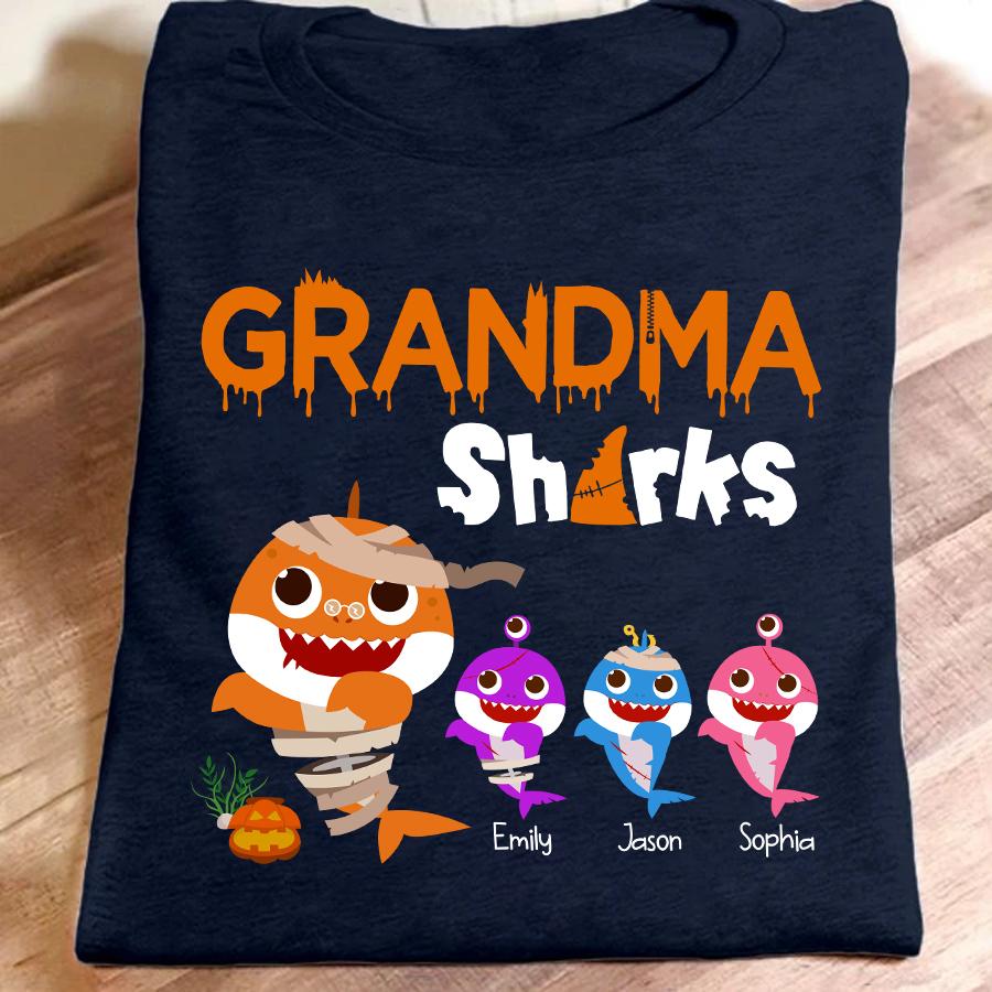 Grandma Shark Halloween Personalized With Grandkids Shirt Gift