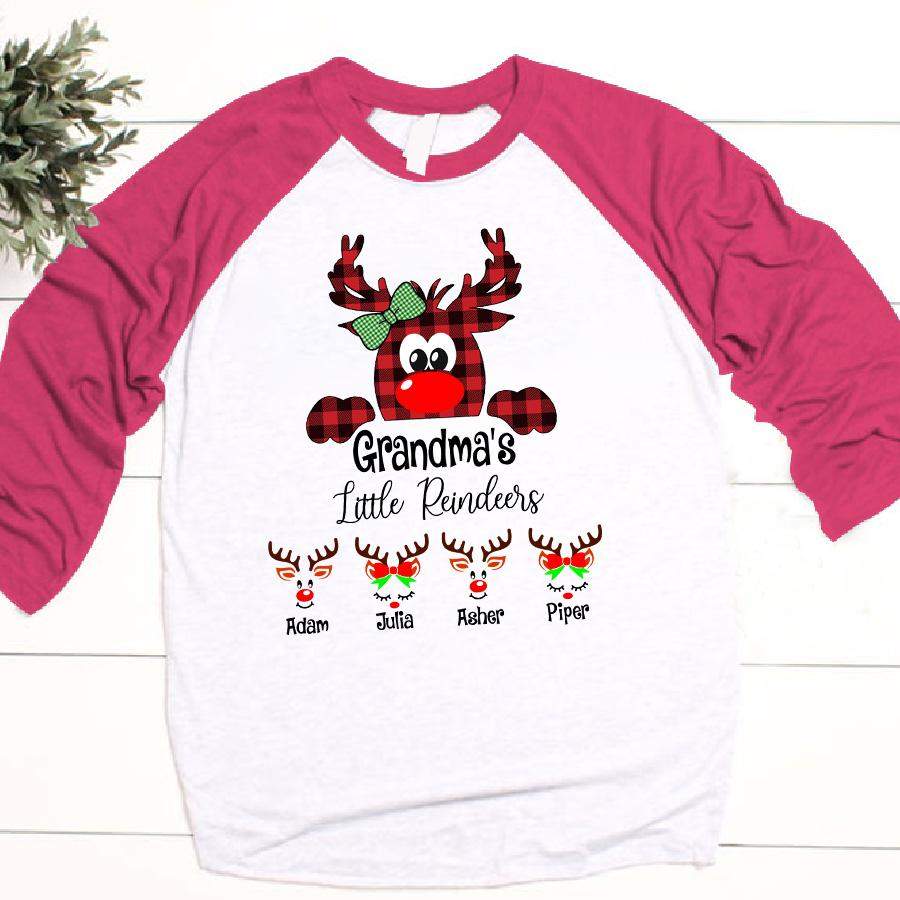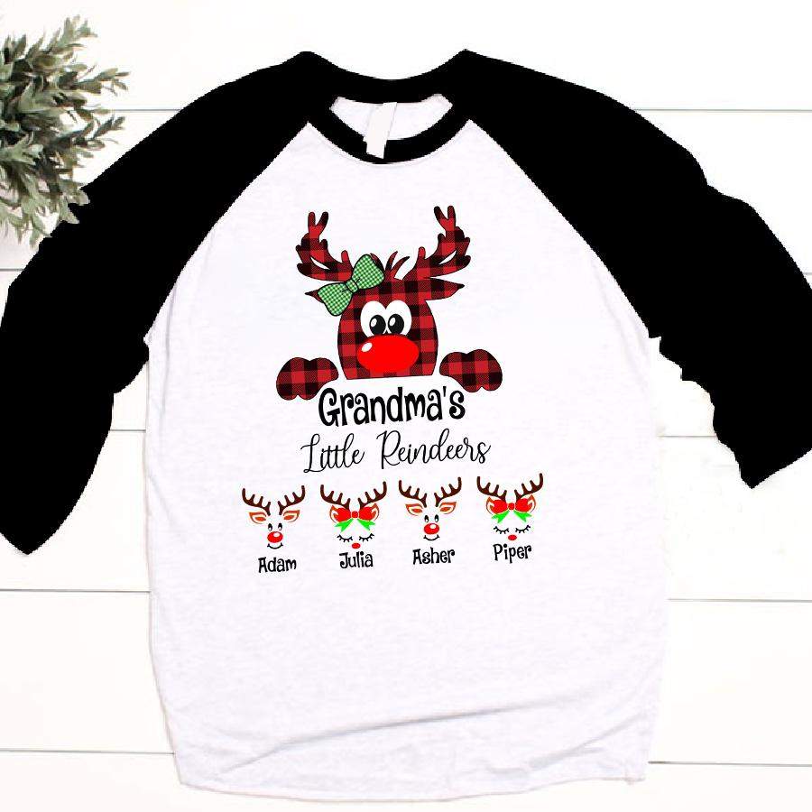 Grandma’s Little Reindeer – Christmas | Personalized Baseball T-shirt