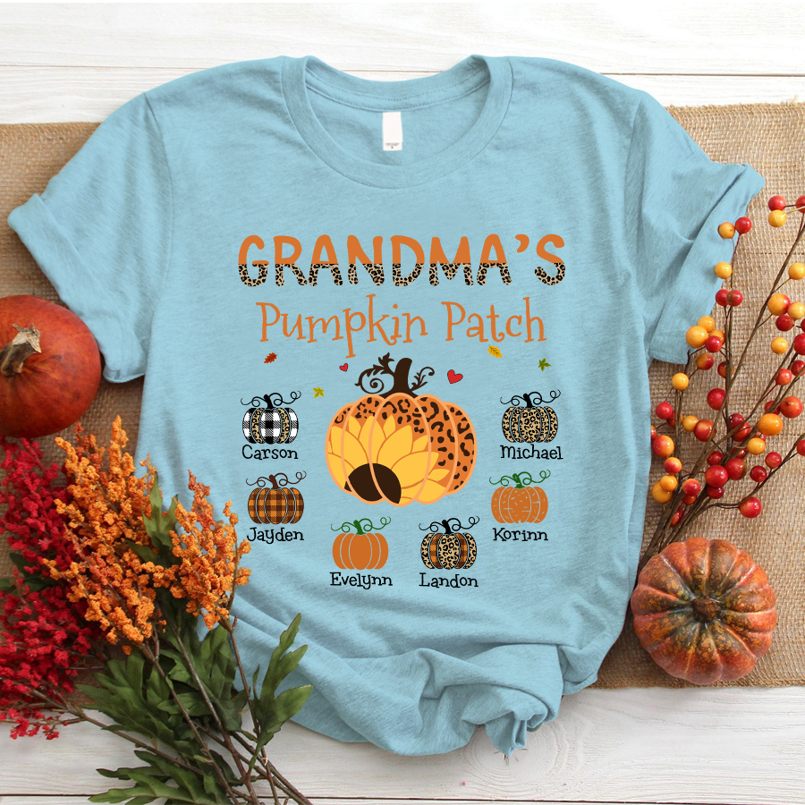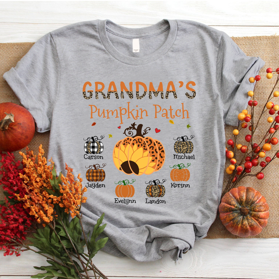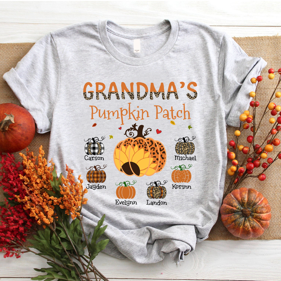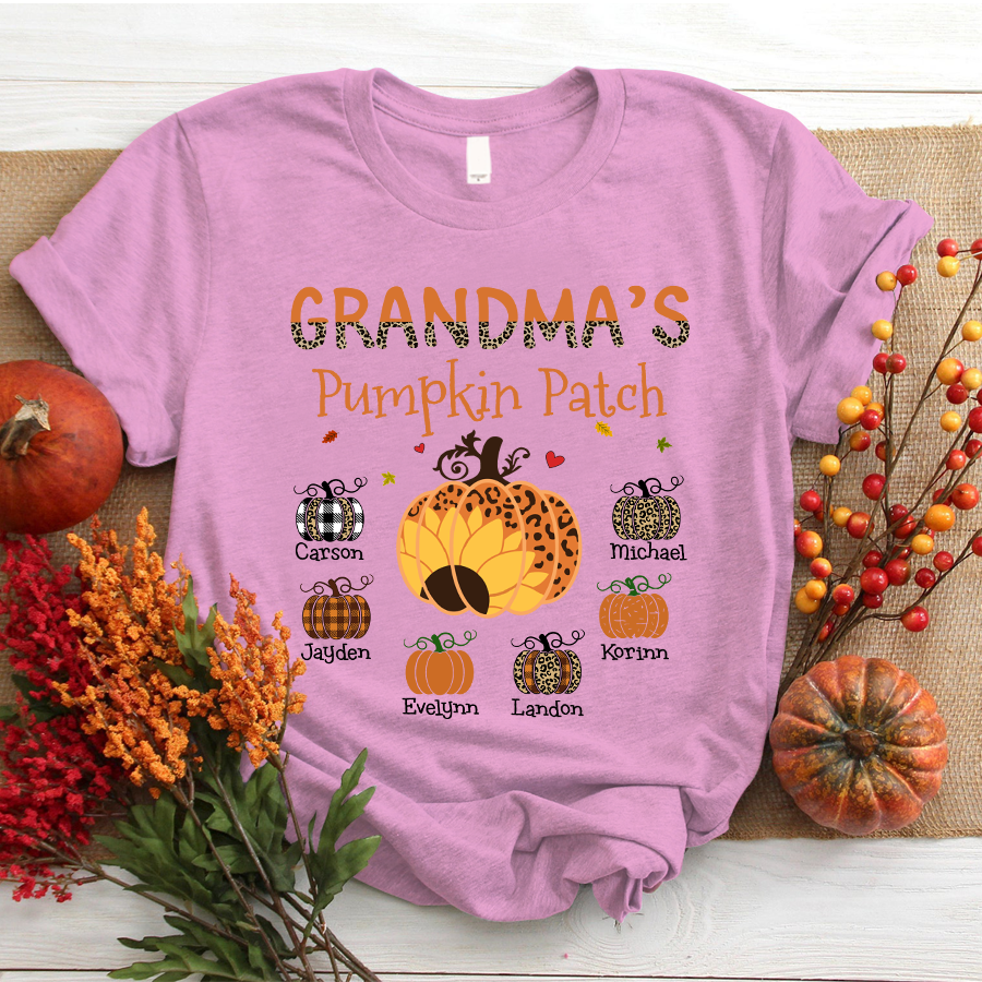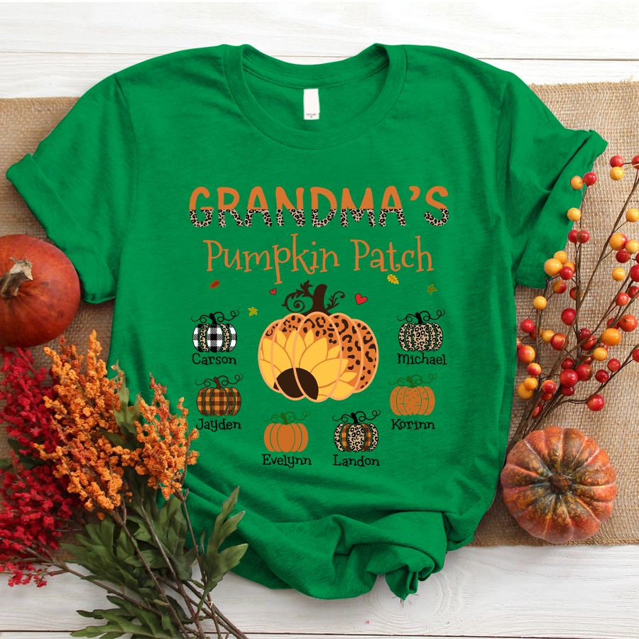 Grandma’S Pumpkin Patch Autumn Personalized Grandkids Names Shirt Gift