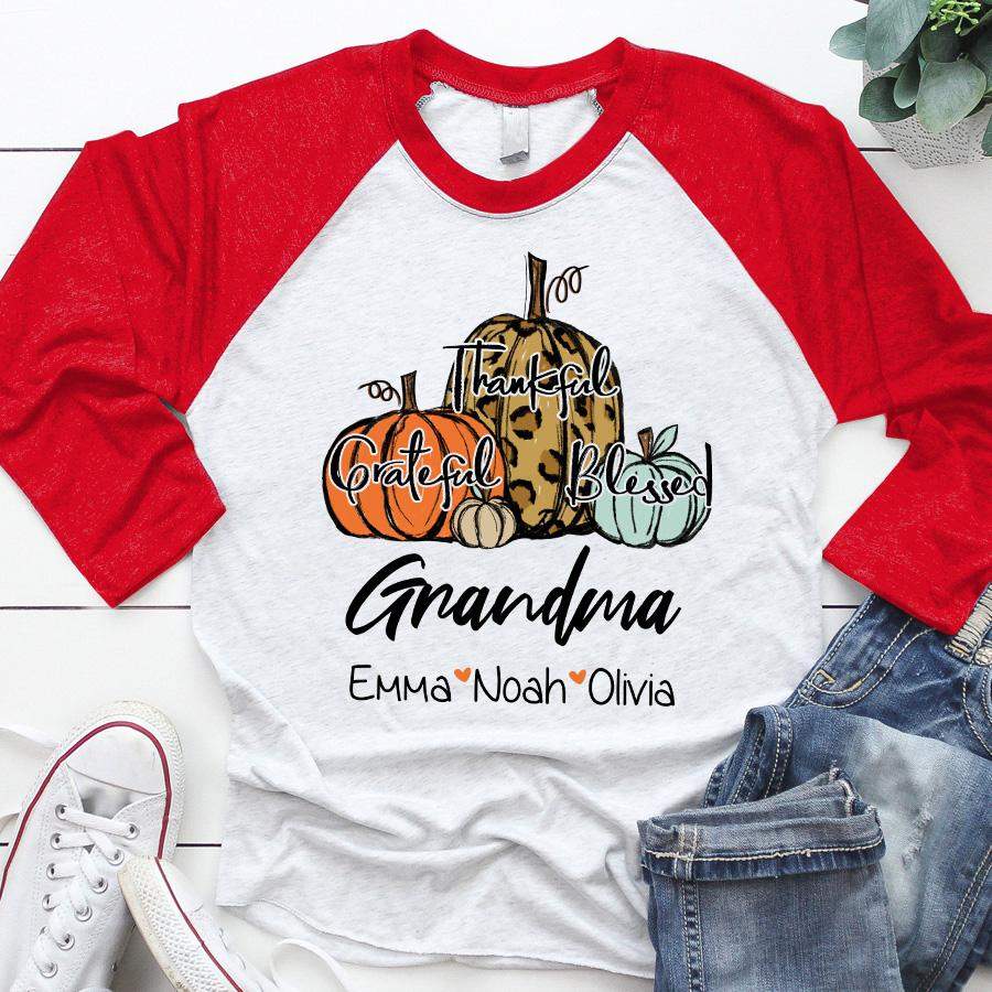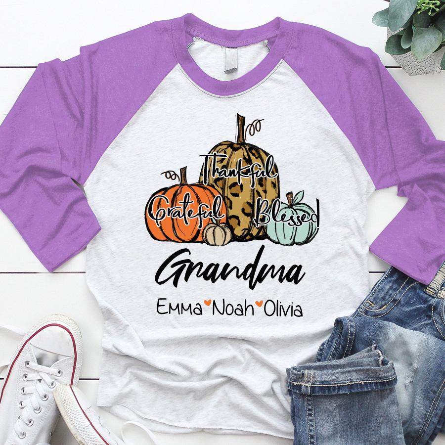 Greatful Thankful Blessed Grandma-Pumpkin Art | Personalized Baseball T-shirt