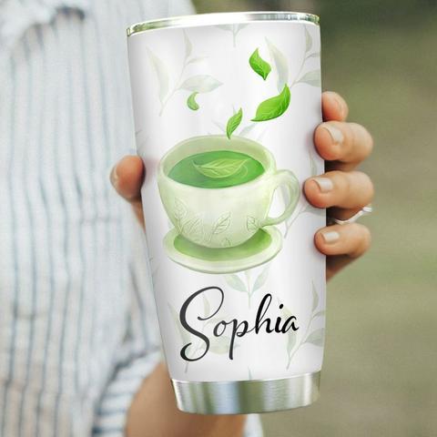 Green Tea Cat Personalized Stainless Steel Tumbler, Personalized Tumblers, Tumbler Cups, Custom Tumblers