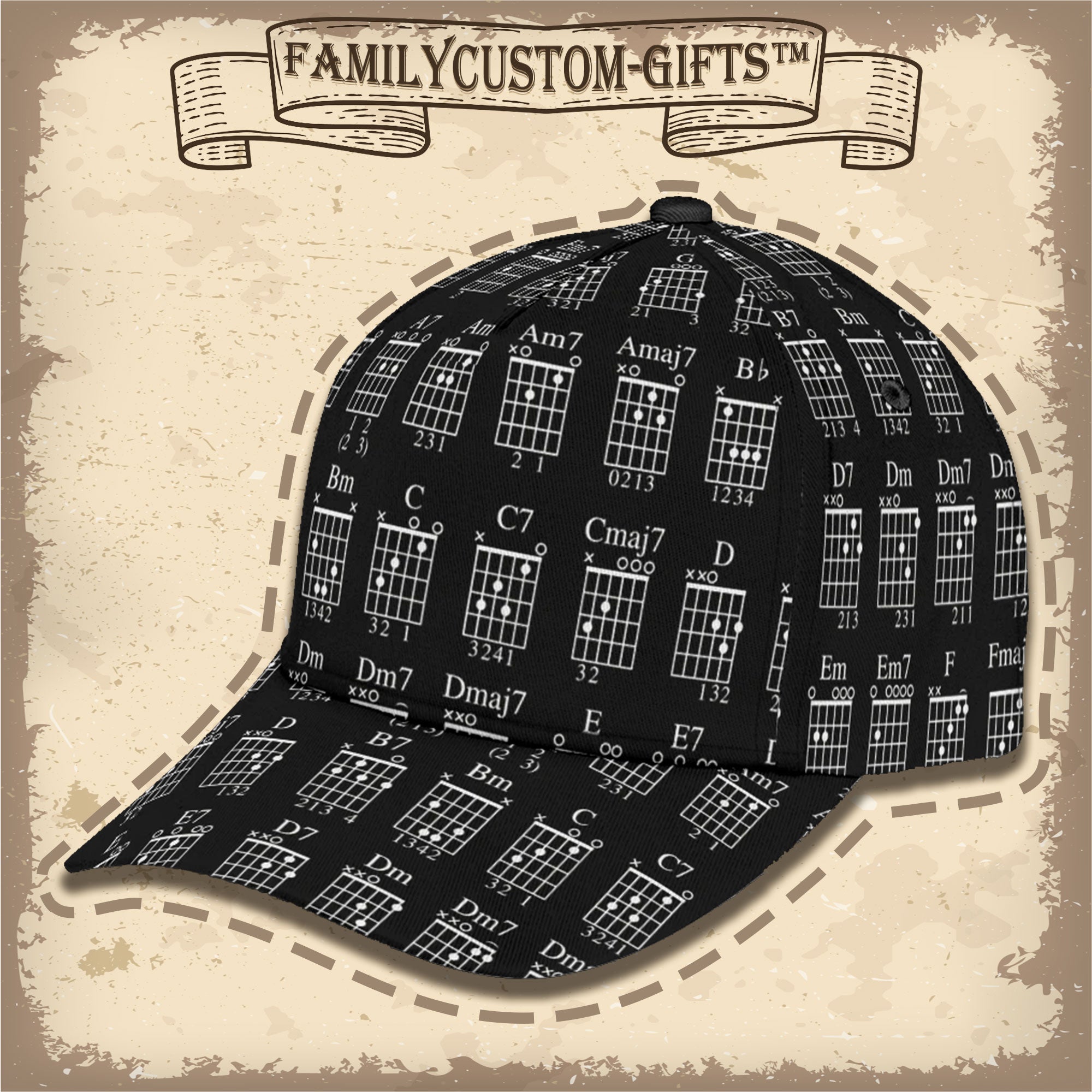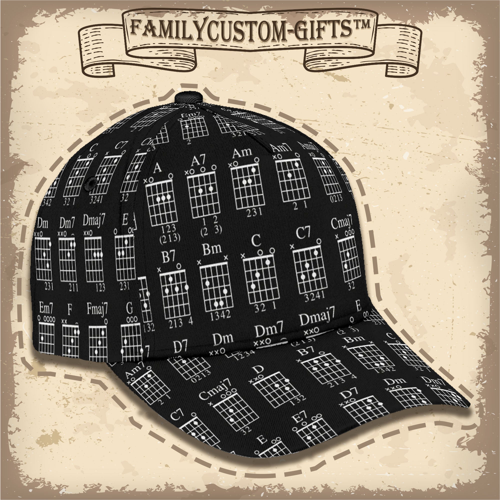 Guitarist Chord Gifts Guitar Custom Hats For Men & Women 3D Prints Personalized Baseball Caps