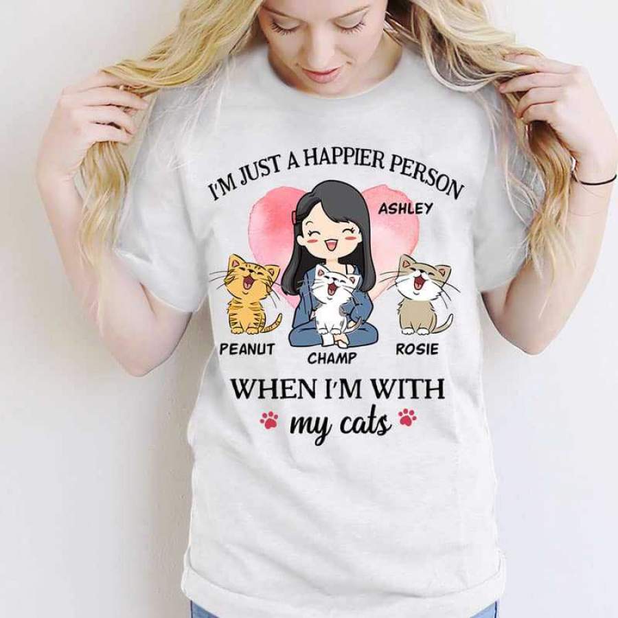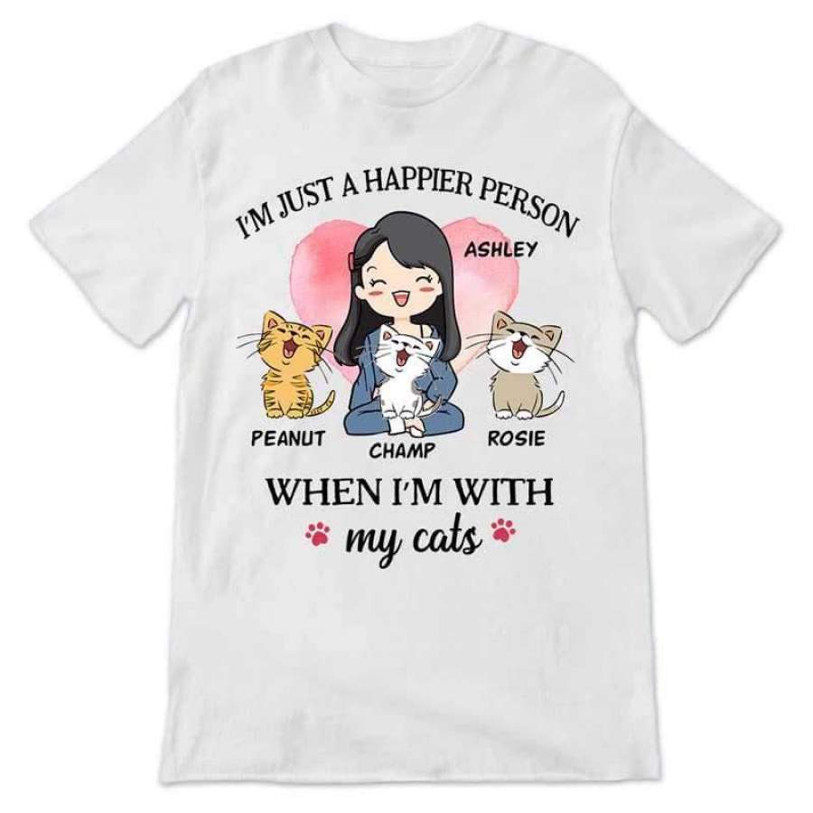 Happier Person With My Cat Chibi Personalized Shirt