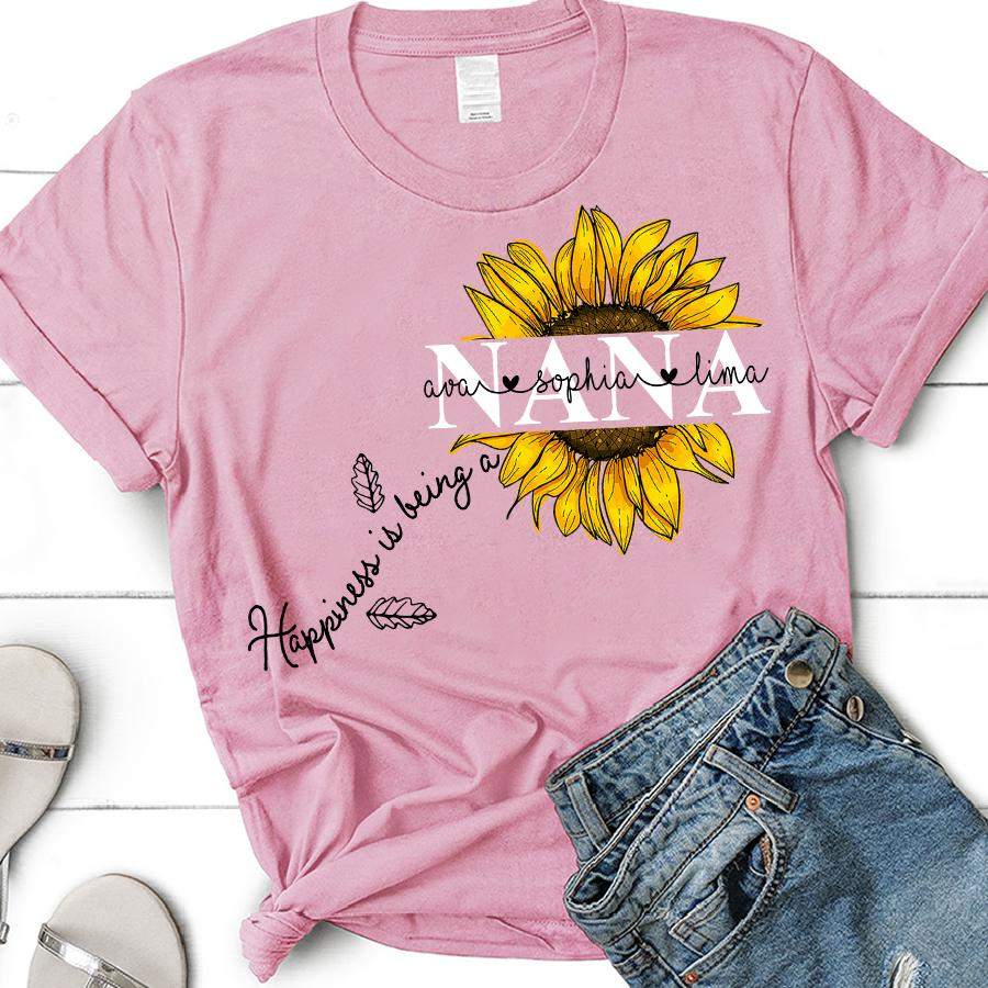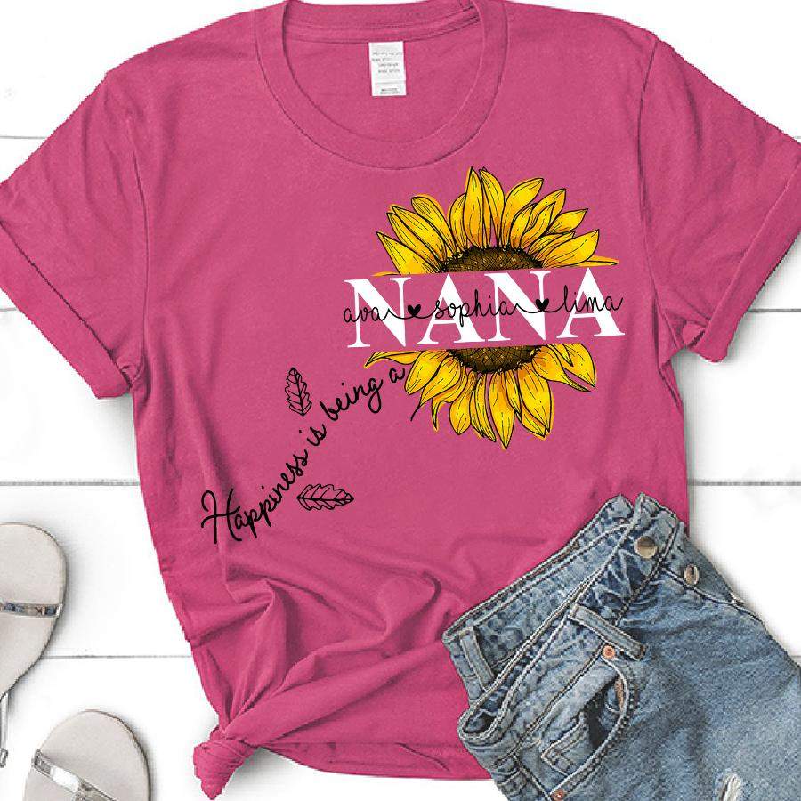 So whether you're looking to show off your own name or create a personalized gift for someone special, LateAndLow Store has got you covered. Start designing your own custom Happiness Is Being A Nana | Personalized T-shirt print-on-demand product today, and let us bring your vision to life!