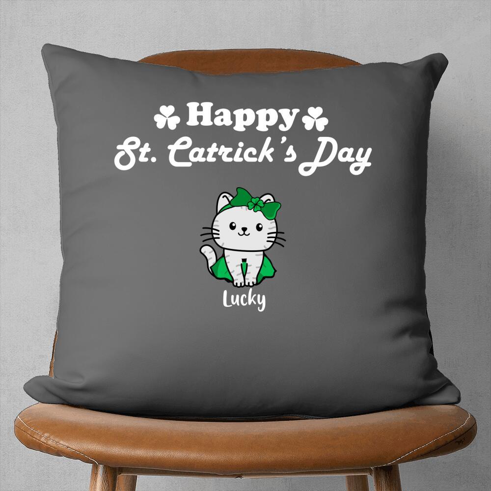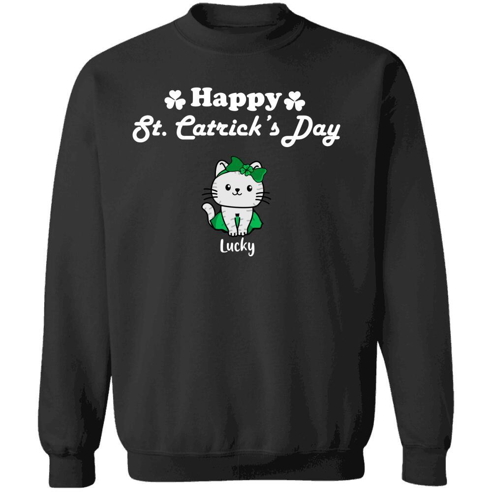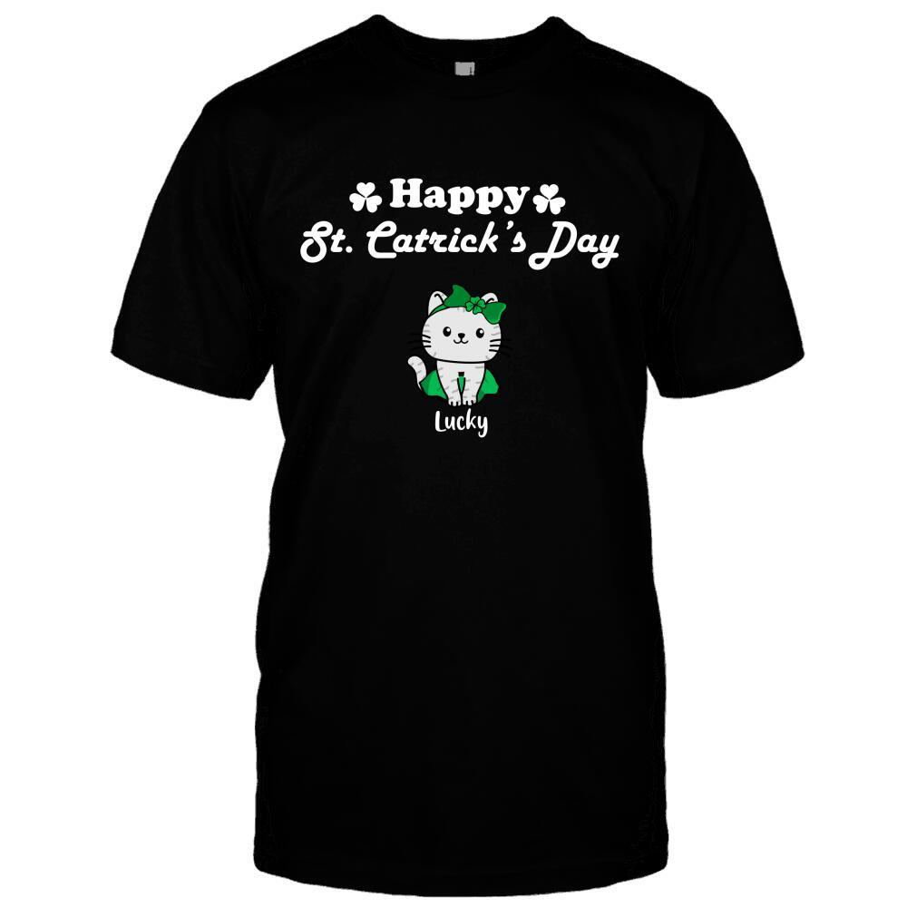 Happy St Catrick Day St Patrick Irish Shamrock Cat Lovers Custom Cat & Name Personalized T-shirt Hoodie Sweatshirt
