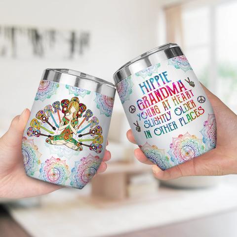 Hippie Grandmas Colorful Mandala Wine Tumbler, Personalized Tumblers, Tumbler Cups, Custom Tumblers