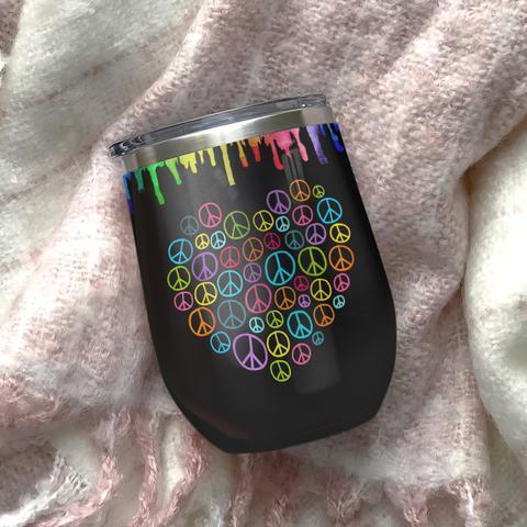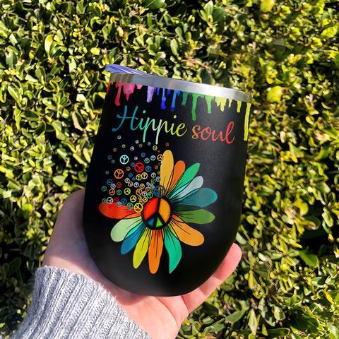Hippie Soul Hippie Symbols Colorful Hippie Flower Wine Tumbler Hippie Gift Wine Tumbler, Personalized Tumblers, Tumbler Cups, Custom Tumblers