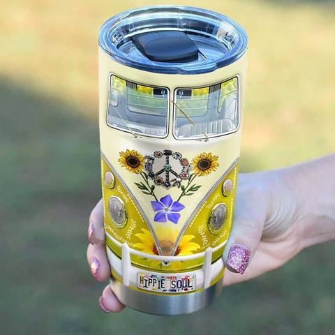 Hippie Soul Van Yellow Personalized Kd2 Stainless Steel Tumbler, Personalized Tumblers, Tumbler Cups, Custom Tumblers