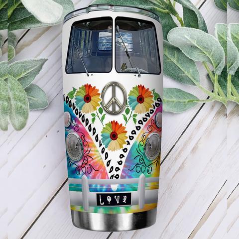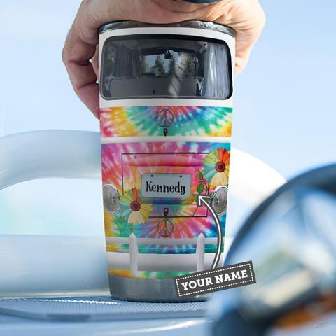Hippie Van Tie Dye Pattern Peace Hippie Tumbler, Campervan Hippie Gift Personalized Stainless Steel Tumbler, Personalized Tumblers, Tumbler Cups, Custom Tumblers