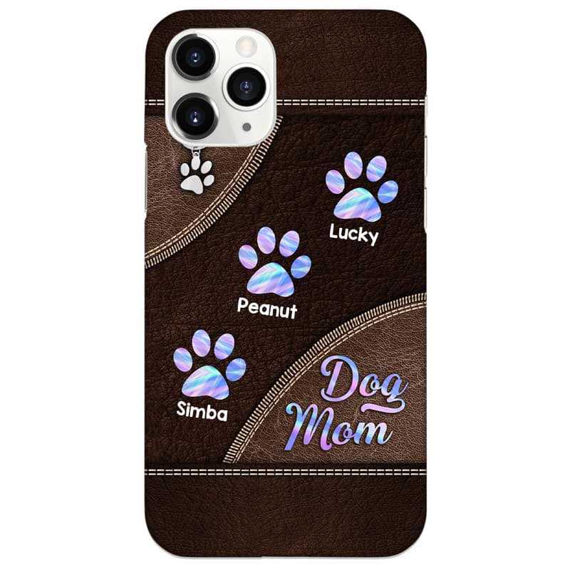 Hologram Leather Texture Dog Cat Mom Personalized Phone Case