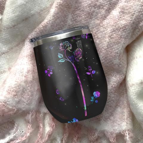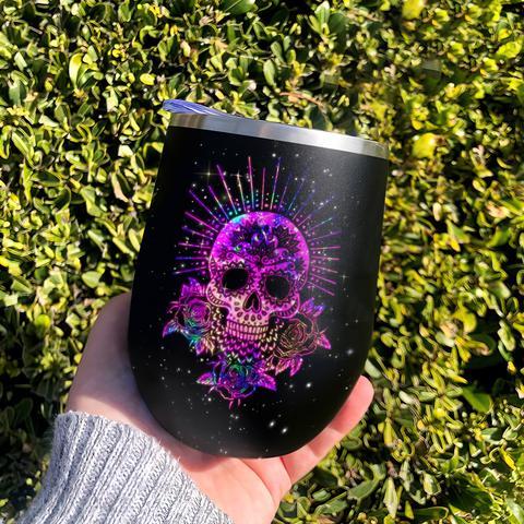 Hologram Skull Roses Wine Tumbler, Skull Lover Gift Wine Tumbler, Personalized Tumblers, Tumbler Cups, Custom Tumblers