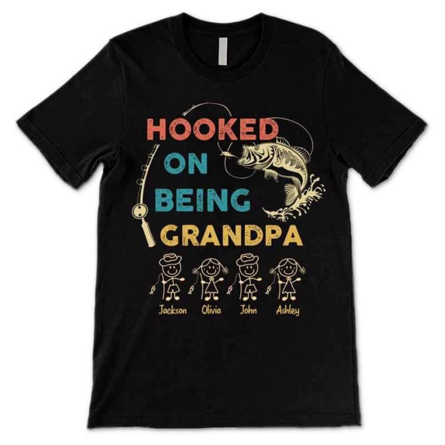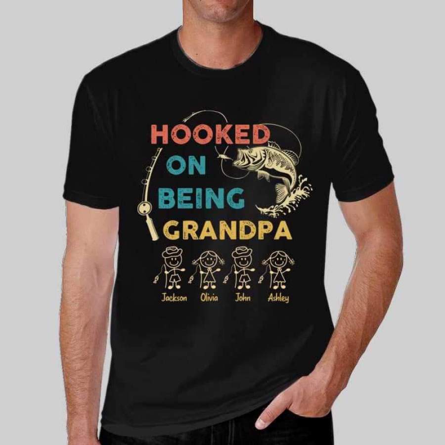 Hooked On Being Grandpa Stick Figure Personalized Shirt