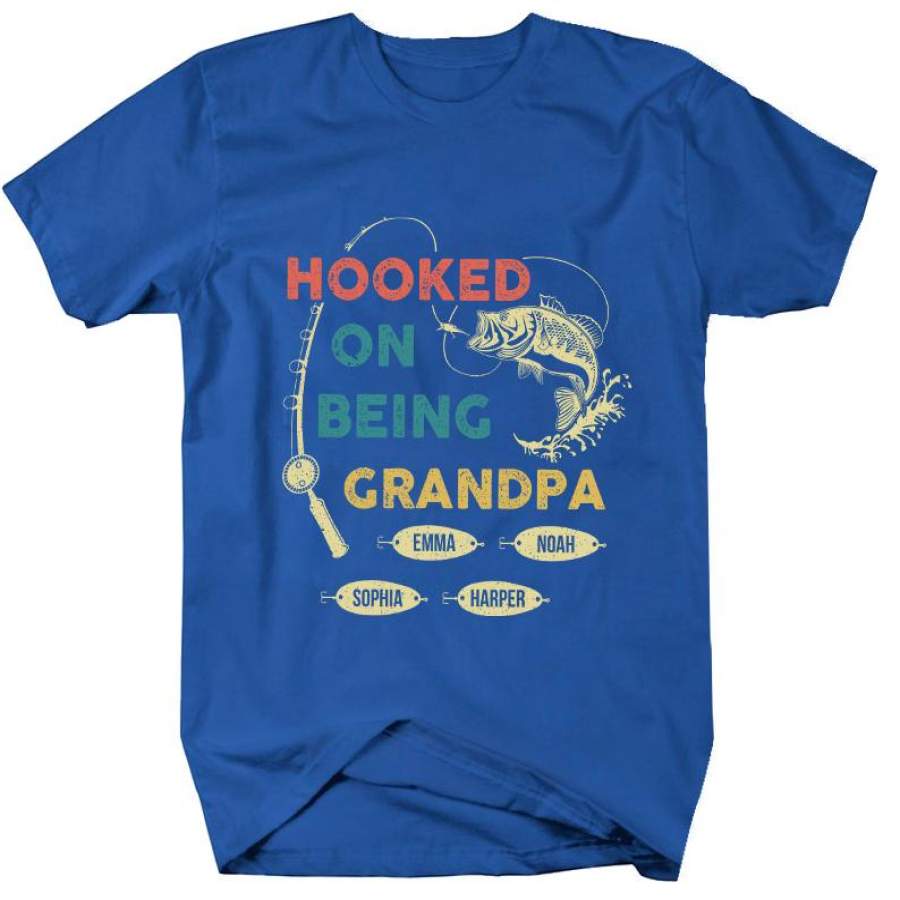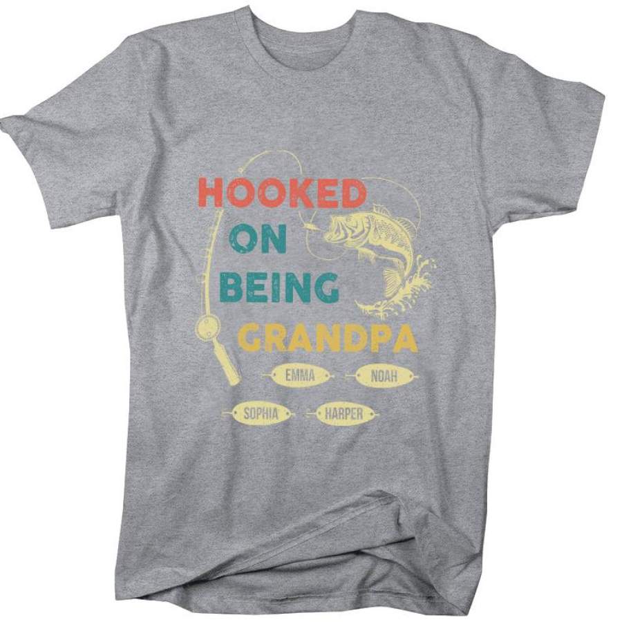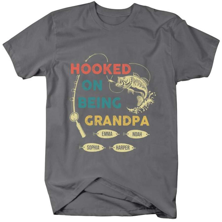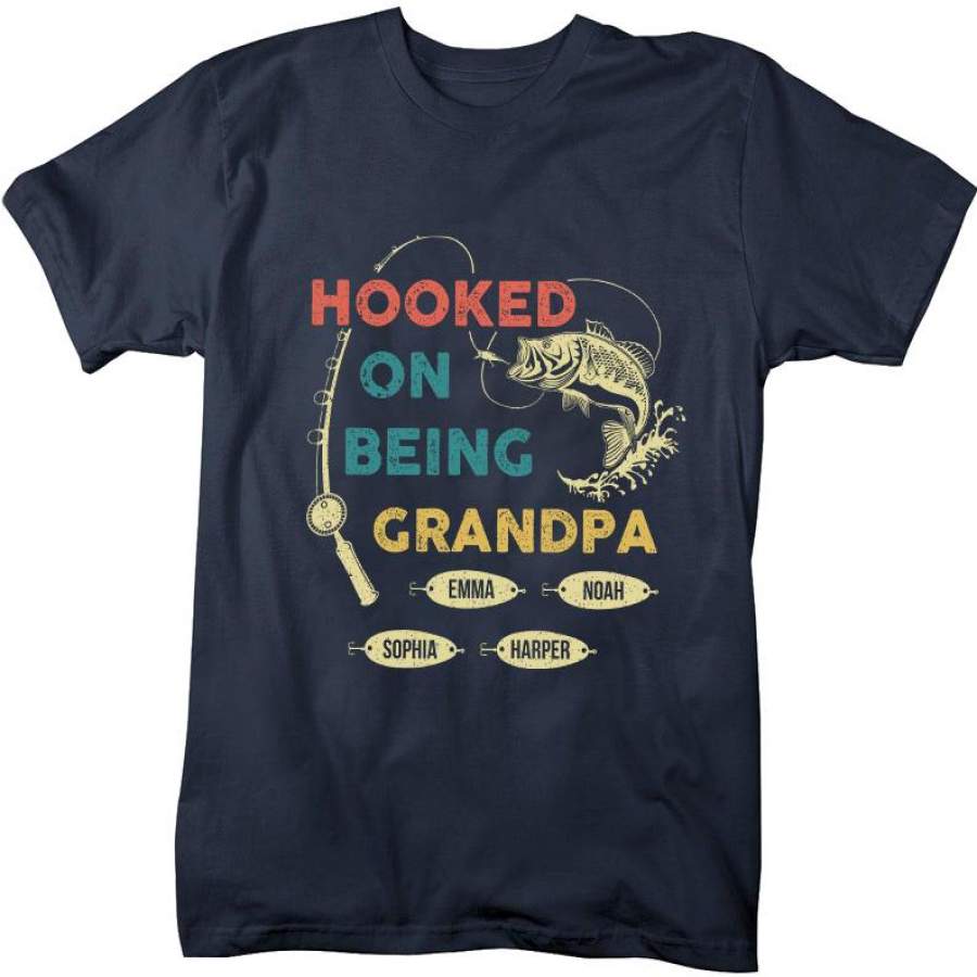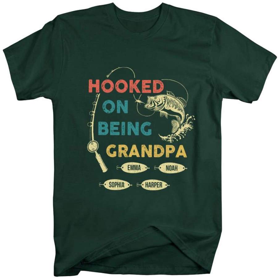 Hooked On Being Grandpa v3 | Personalized Grandpa T-shirt
