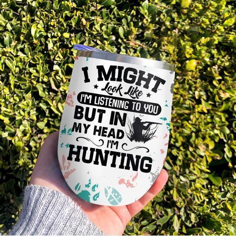 Hunting In My Head Wine Tumbler, Personalized Tumblers, Tumbler Cups, Custom Tumblers