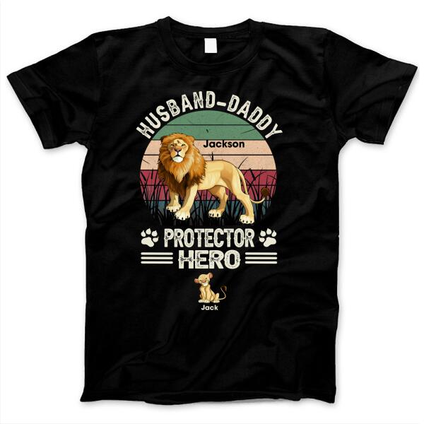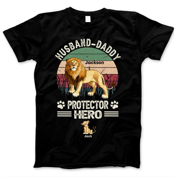 Husband Daddy Protector Hero Strong Lion Gift For Father’s Day Custom Name Personalized Shirt