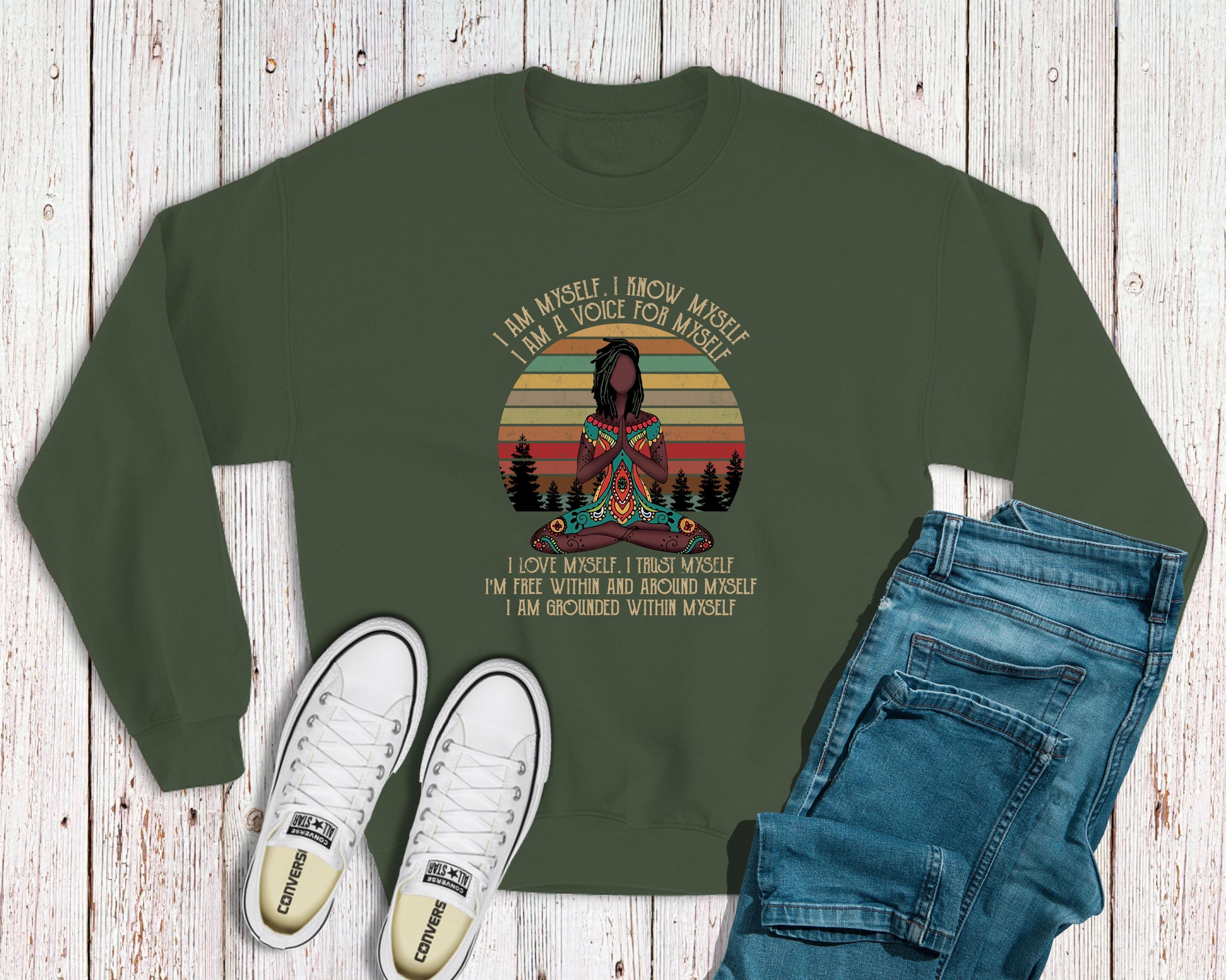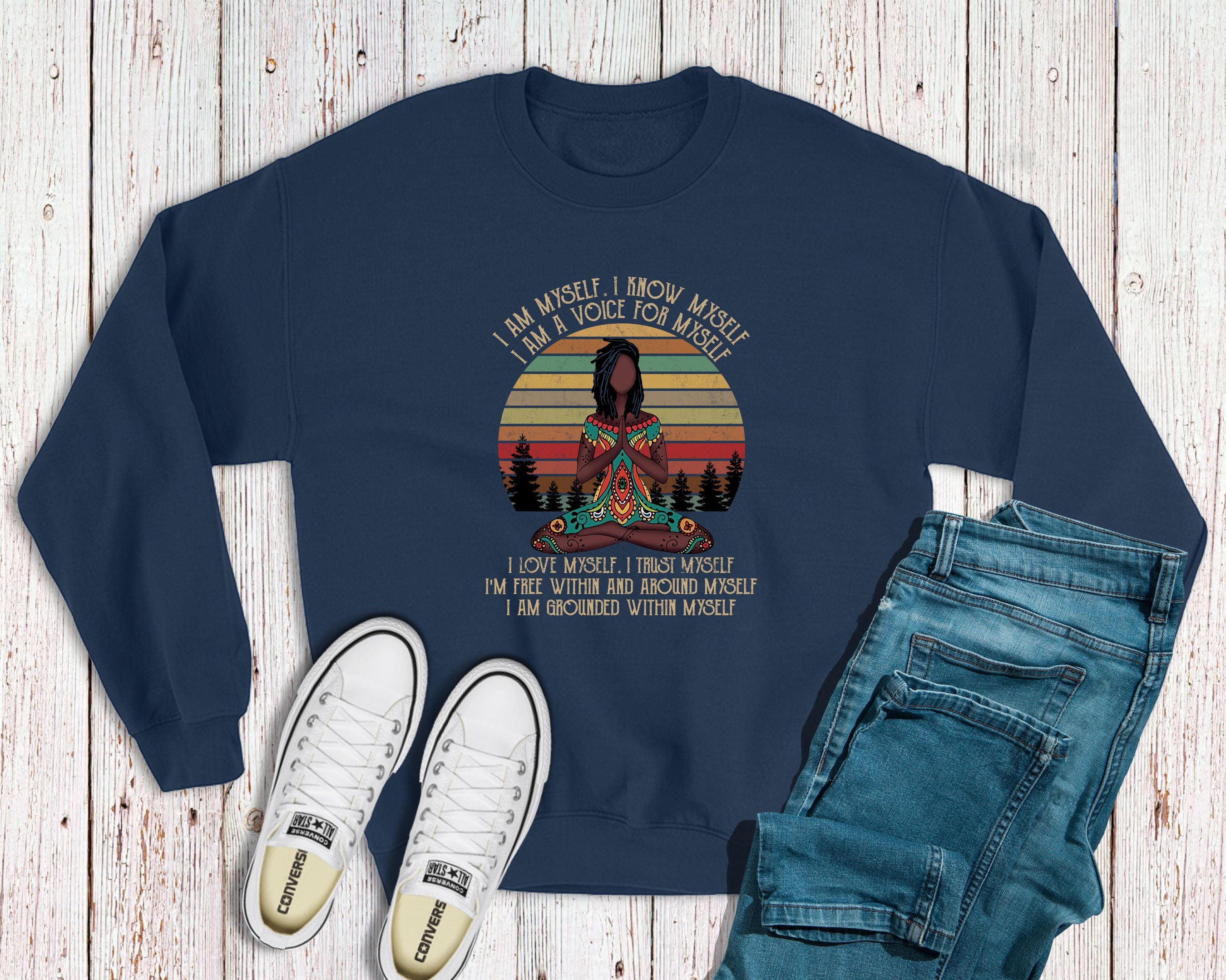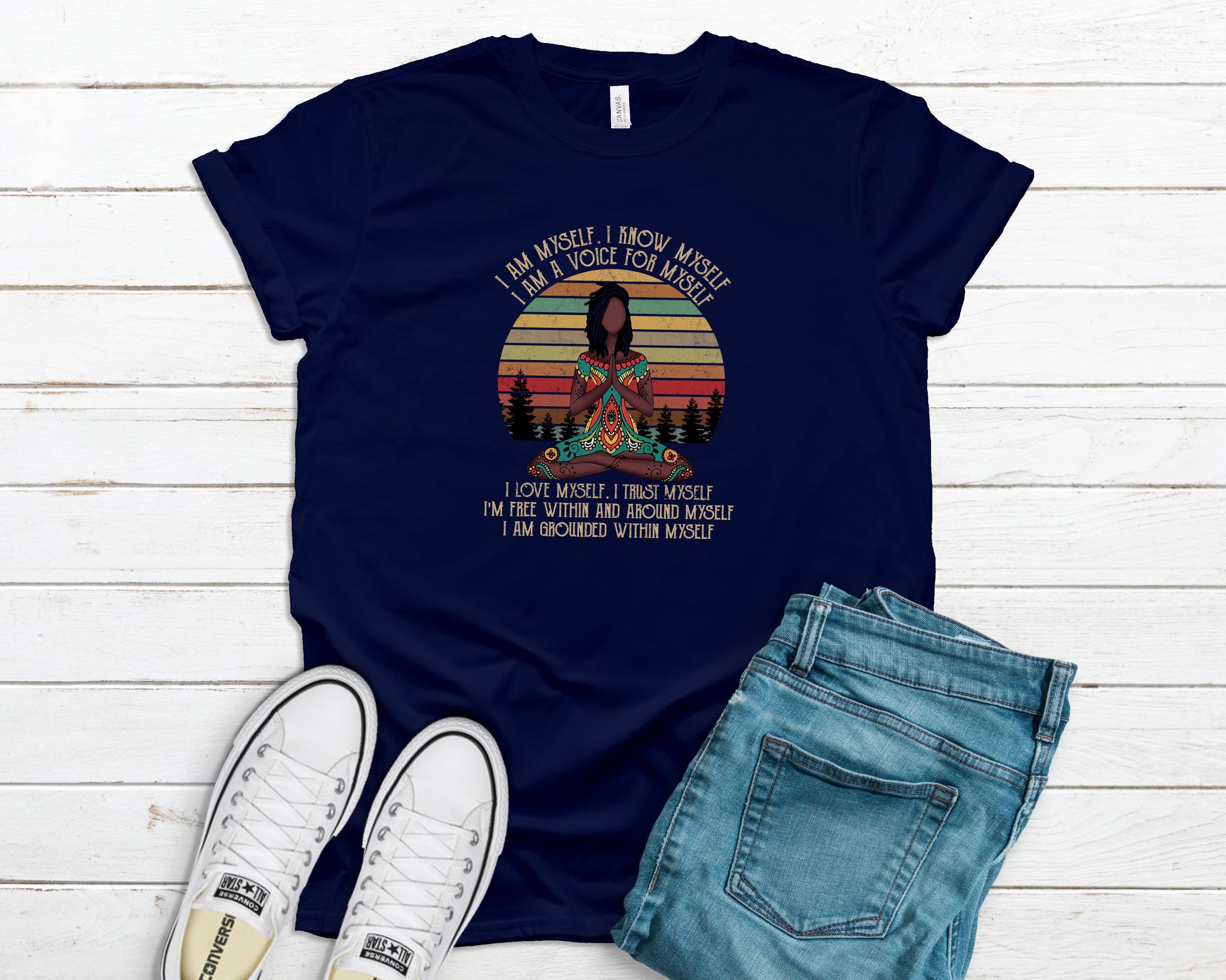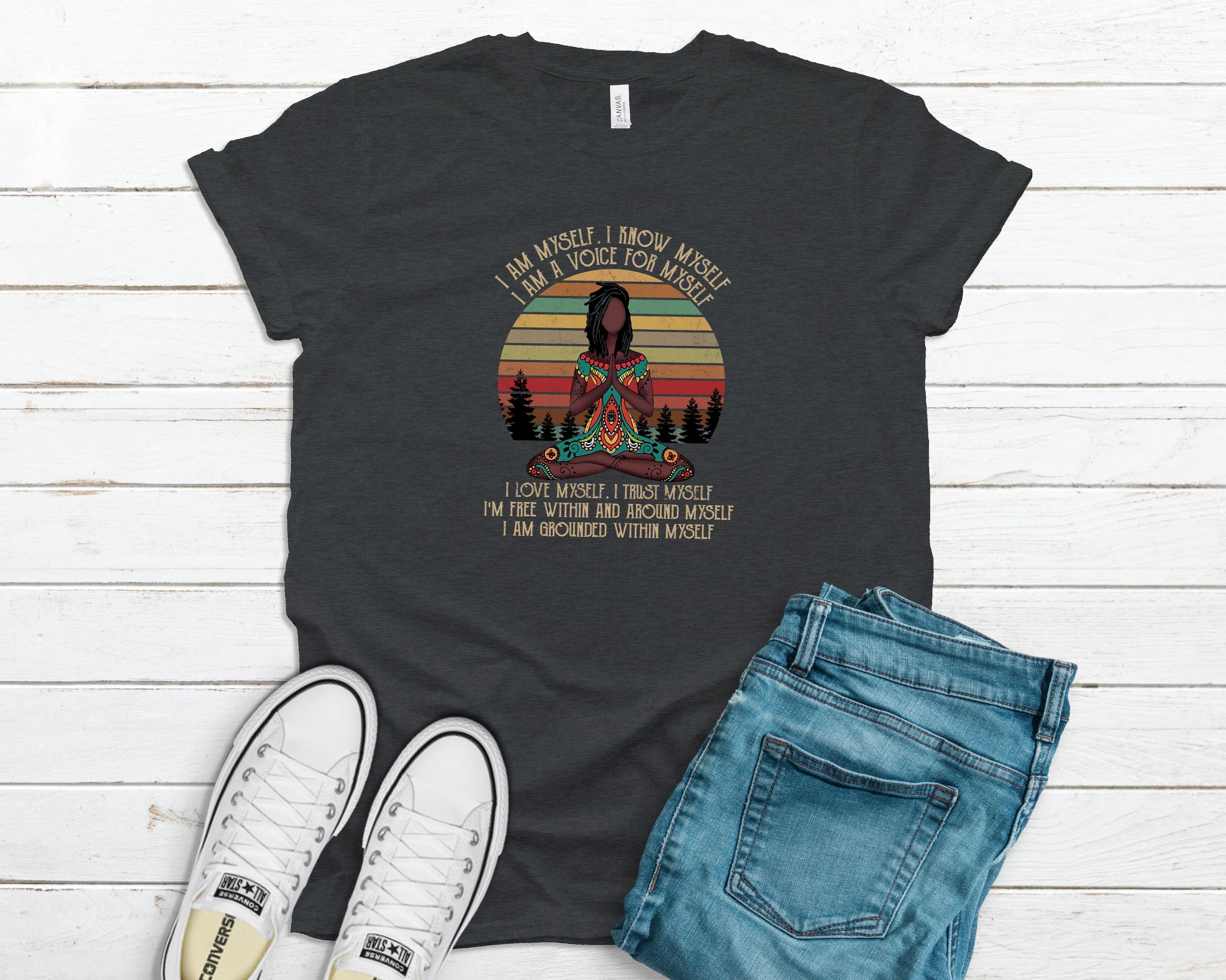 I am myself I know myself shirt, dreadlocks girl shirt, black girl shirt