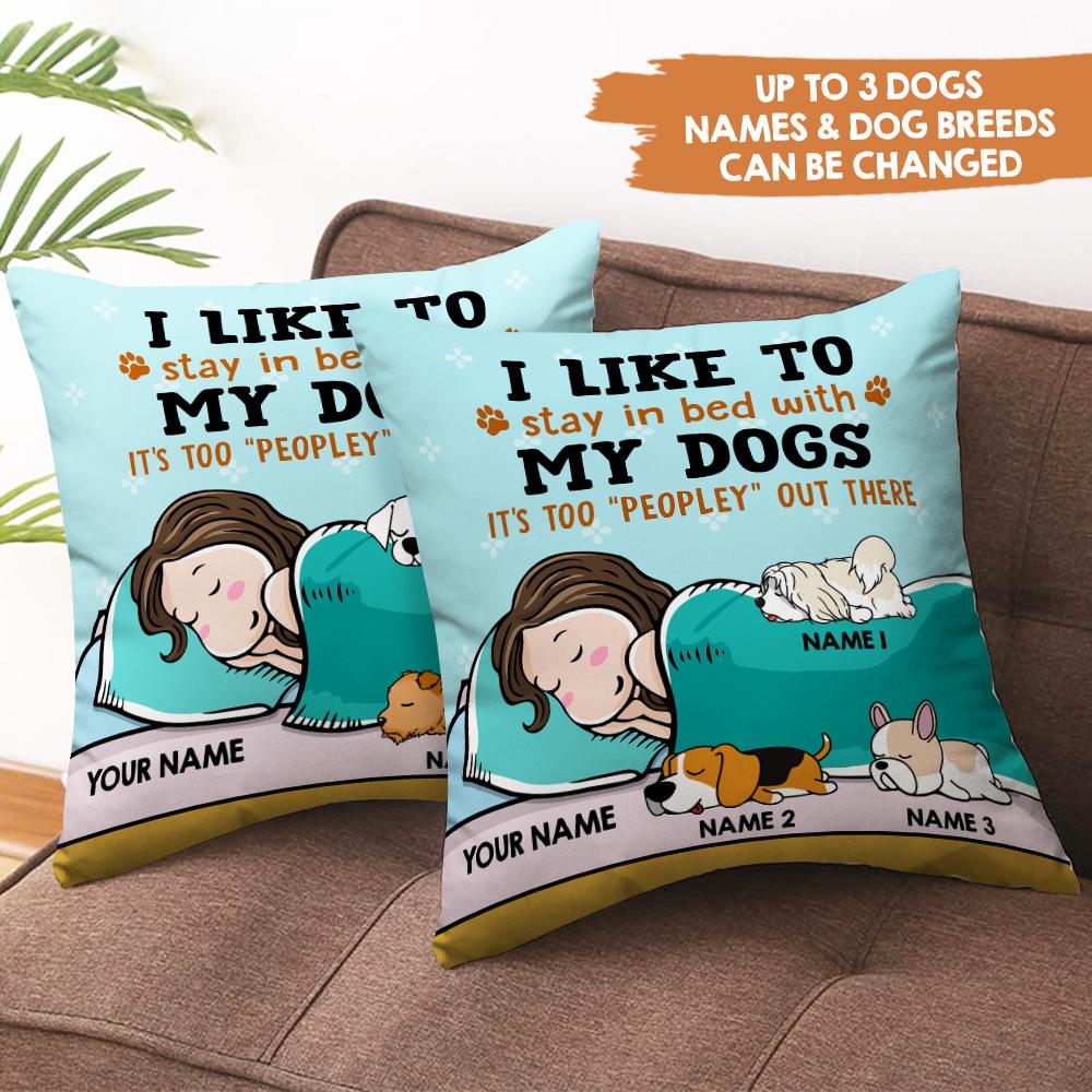 I Like To Stay In Bed With My Dogs – Personalized Pillow (Insert Included)