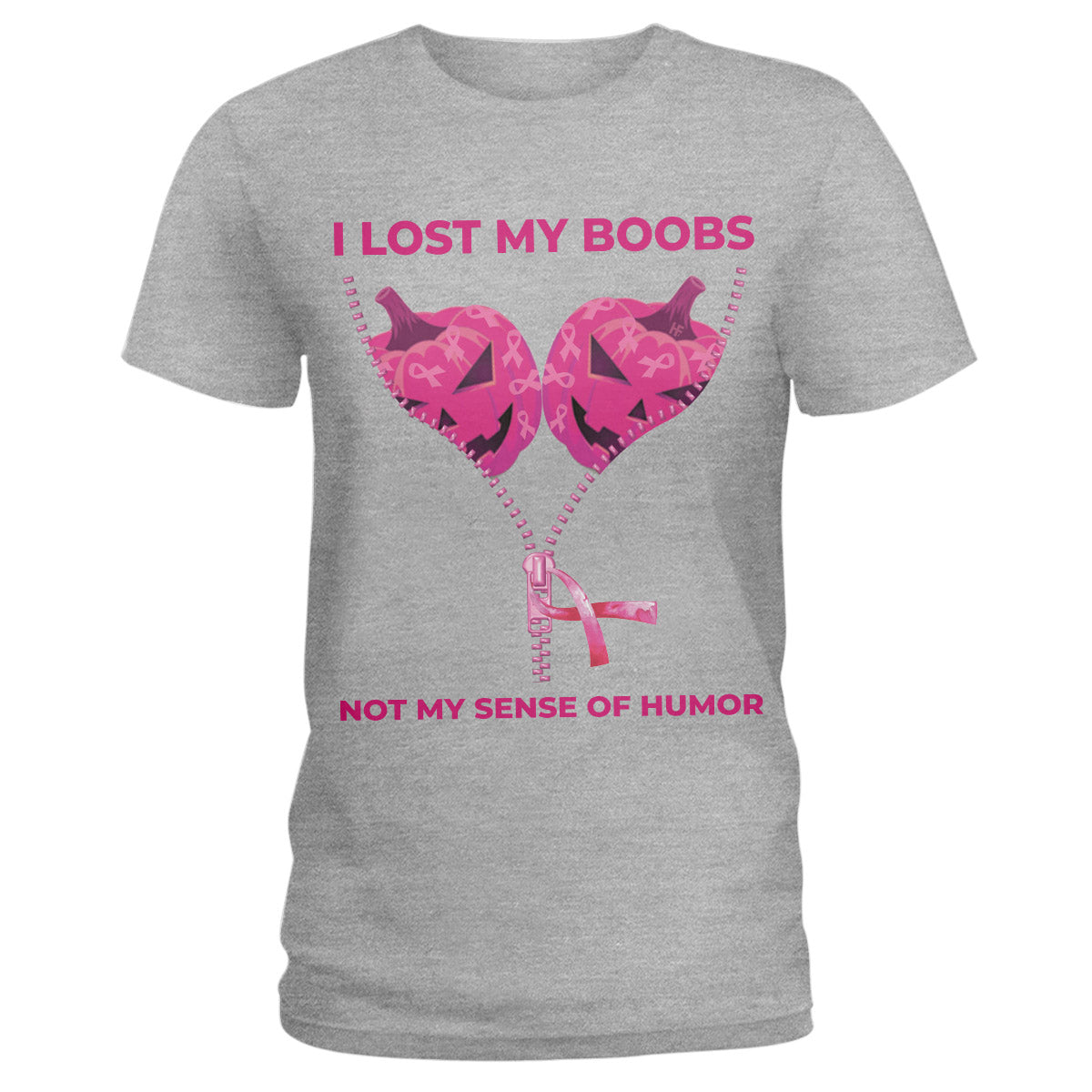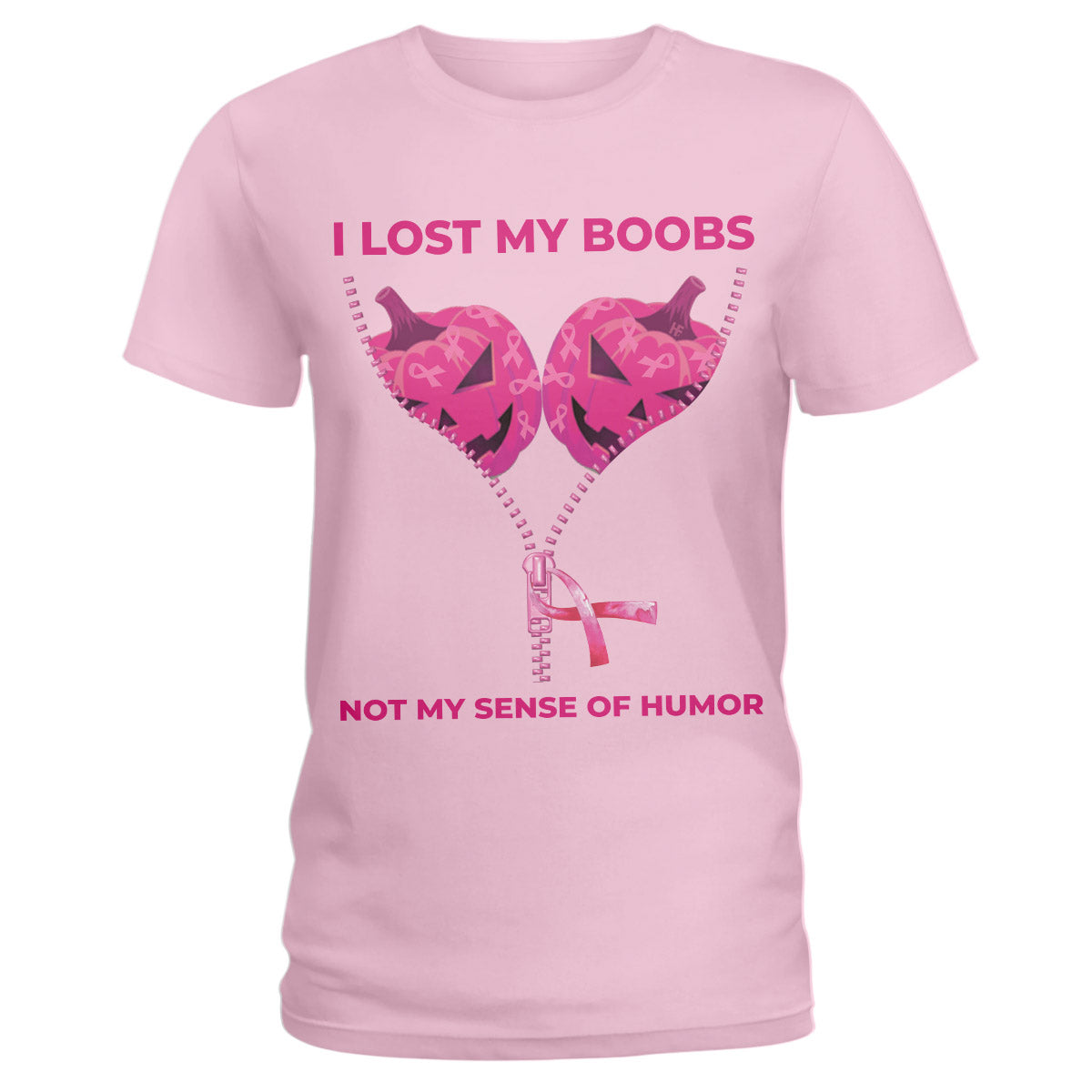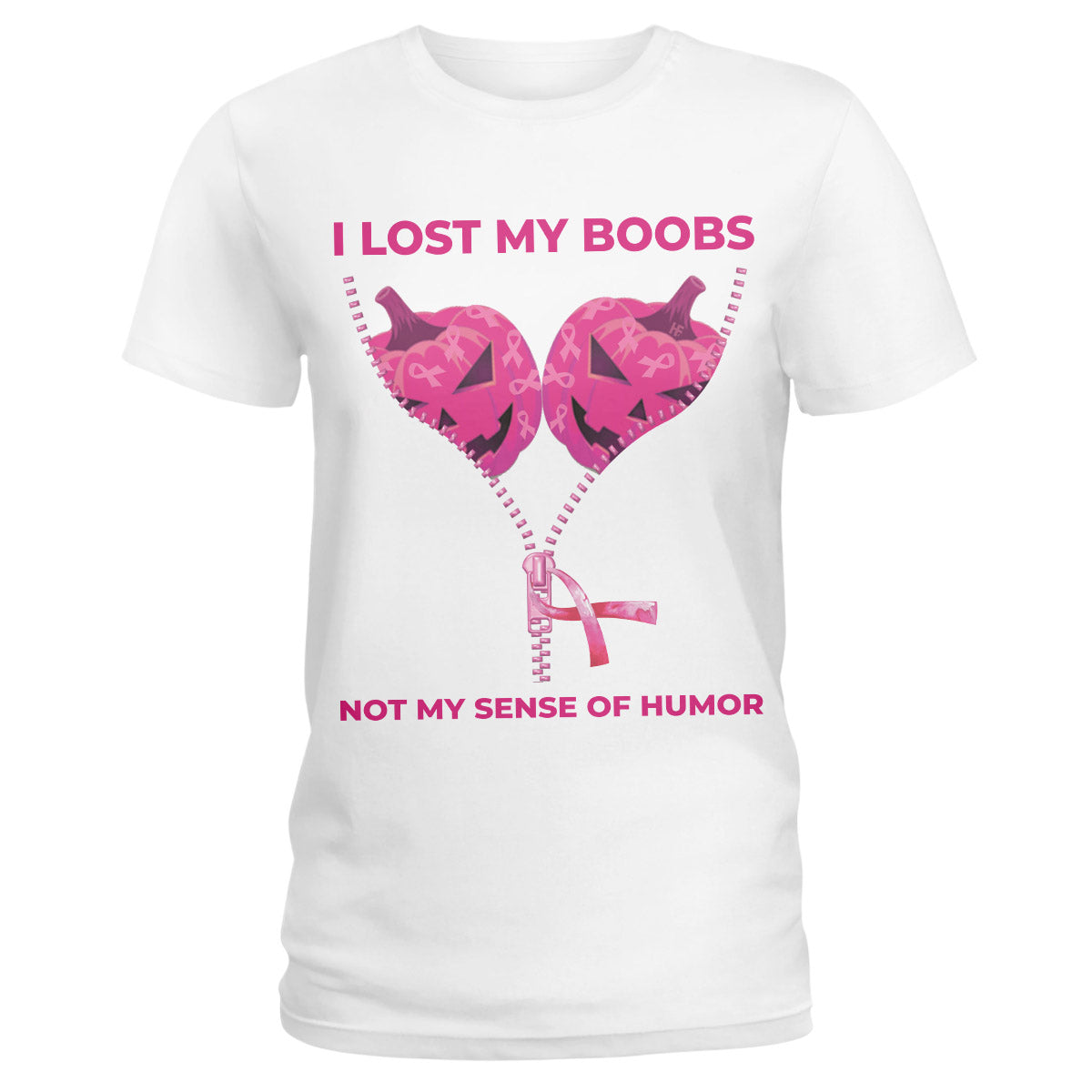 I Lost My Boobs Breast Cancer Awareness, Funny Halloween Jack-O’-Lantern Pumpkin Zipper Ladies T-Shirt