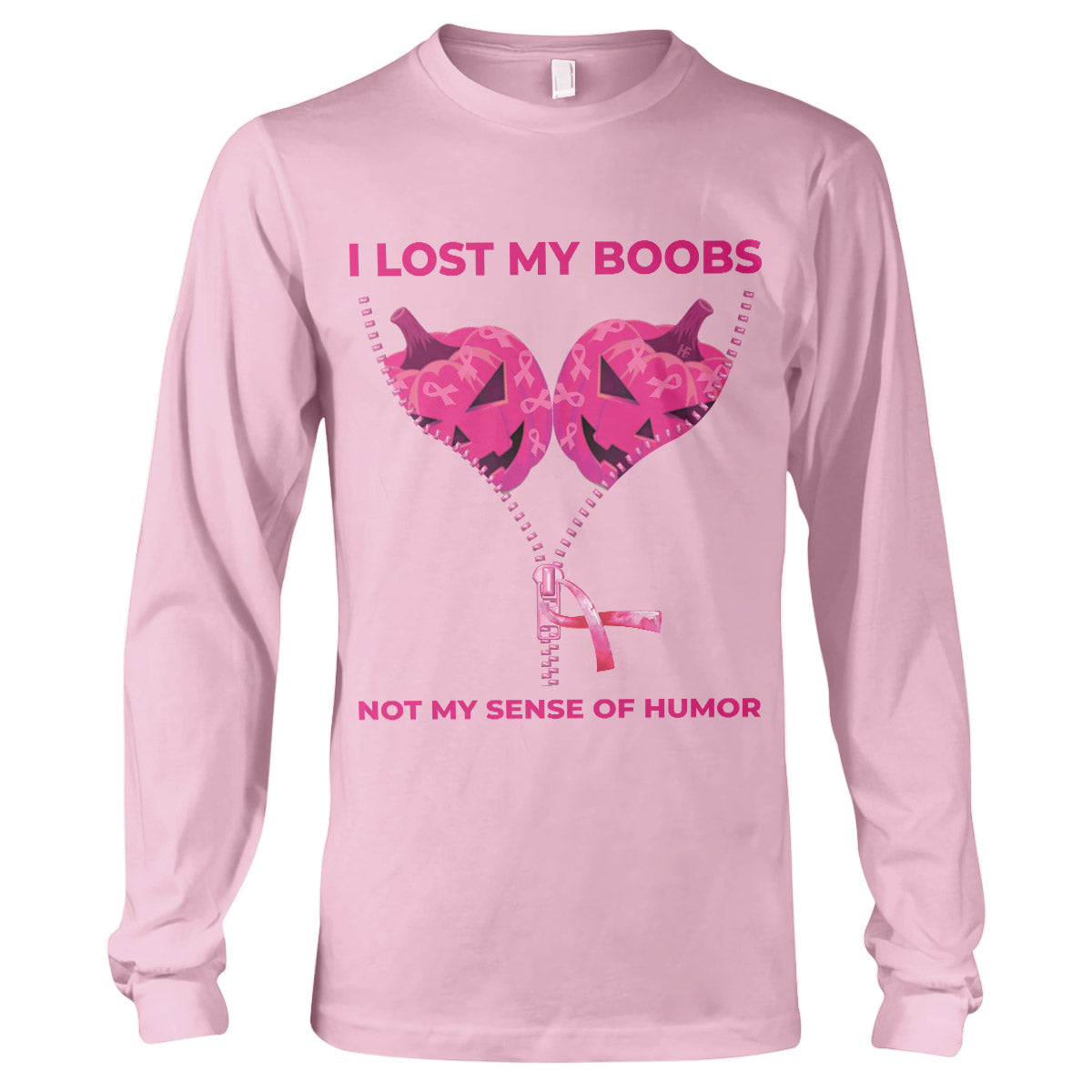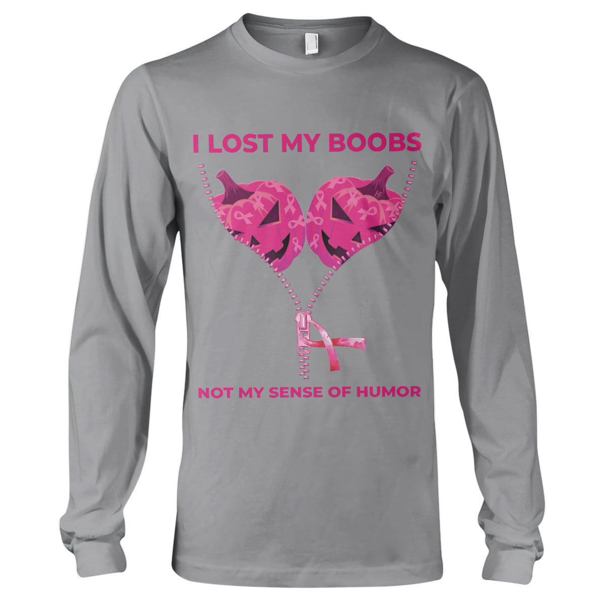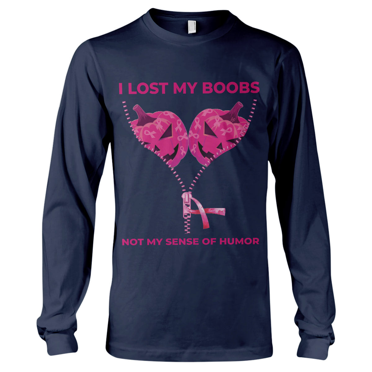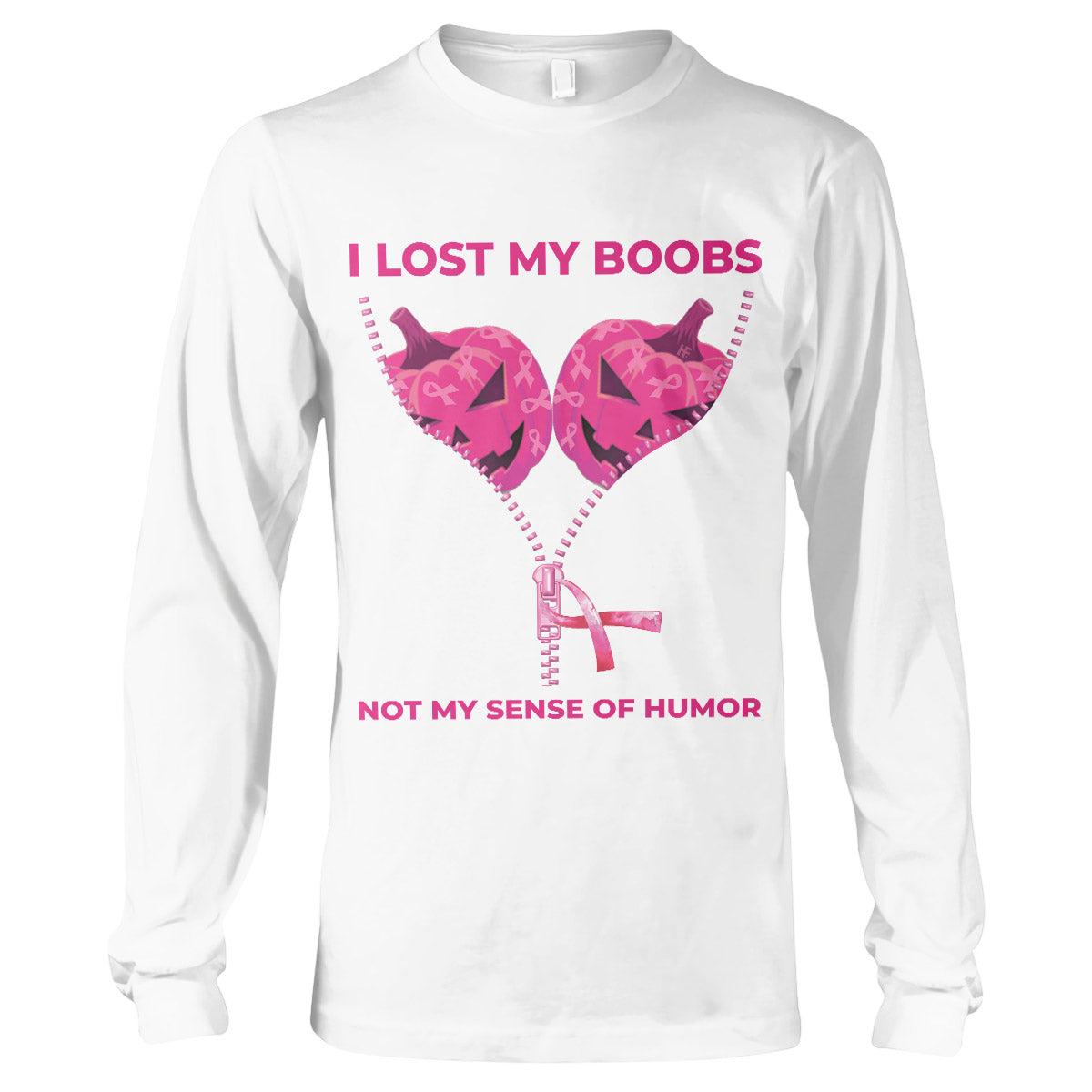 I Lost My Boobs Breast Cancer Awareness, Funny Halloween Jack-O’-Lantern Pumpkin Zipper Long Sleeve T-Shirt