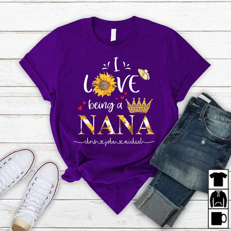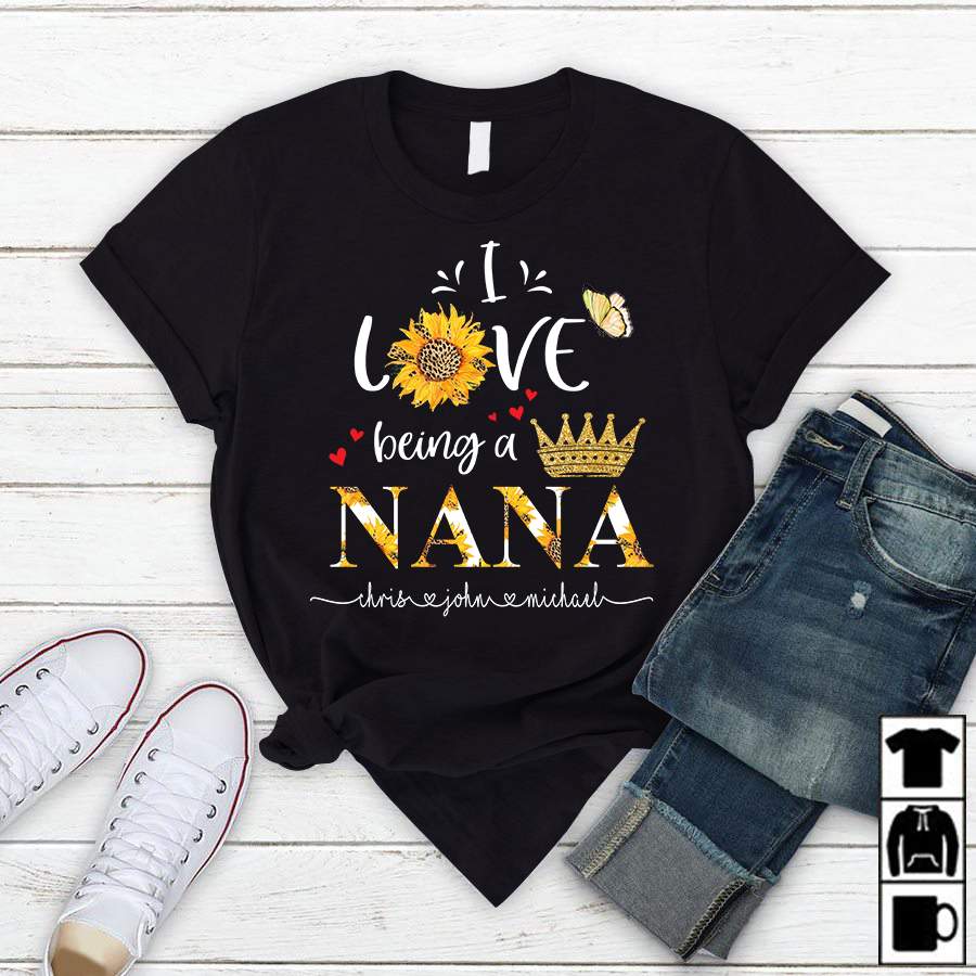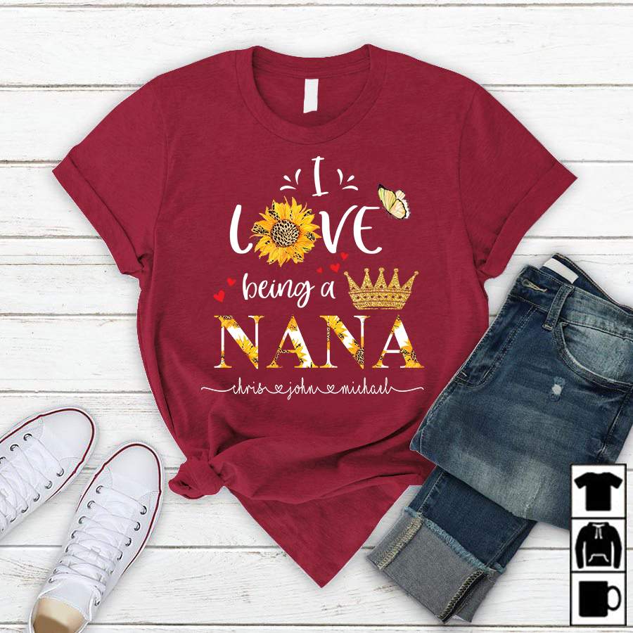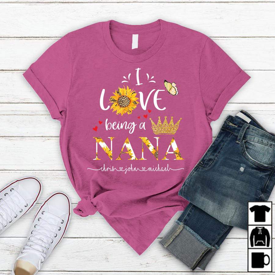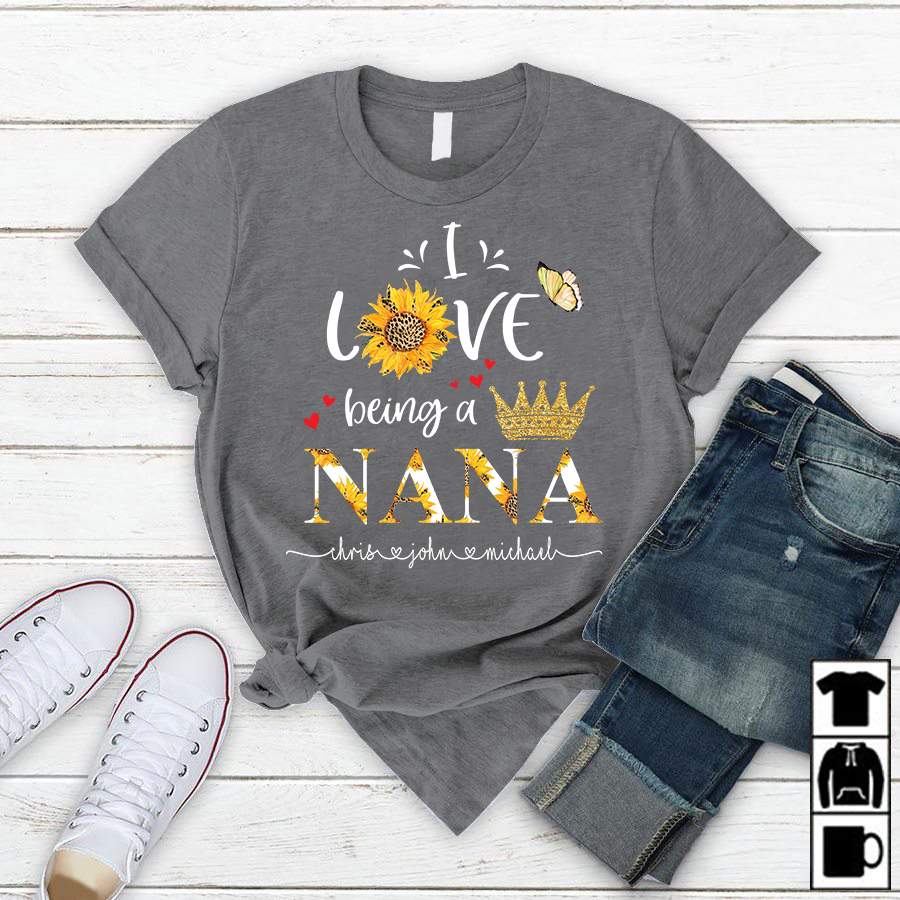 I Love Being A Nana – Gold | Personalized T-Shirt