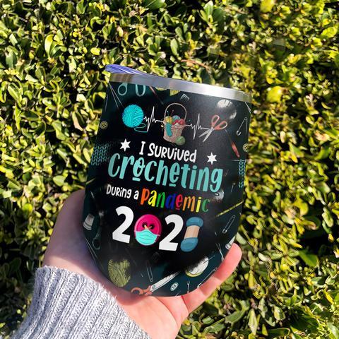I Survived Crocheting During A Pandemic 2021 Crochet Lover Pattern Wine Tumbler Crochet Gift Wine Tumbler, Personalized Tumblers, Tumbler Cups, Custom Tumblers