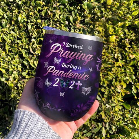 I Survived Praying During A Pandemic 2021 Butterfly Faith Wine Tumbler Faith Gift Wine Tumbler, Personalized Tumblers, Tumbler Cups, Custom Tumblers