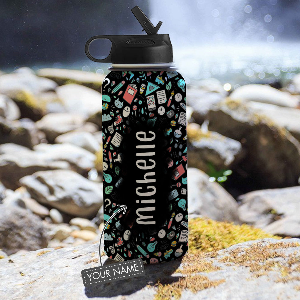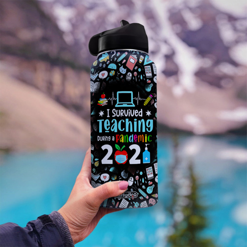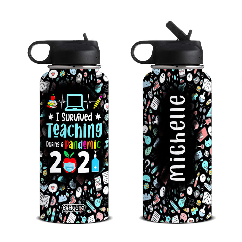 I Survived Teaching During Pandemic 2021 Teaching Pattern Stainless Steel Bottle Teacher Gift Personalized Ablz0806013Z Stainless Steel Bottle With Straw Lid