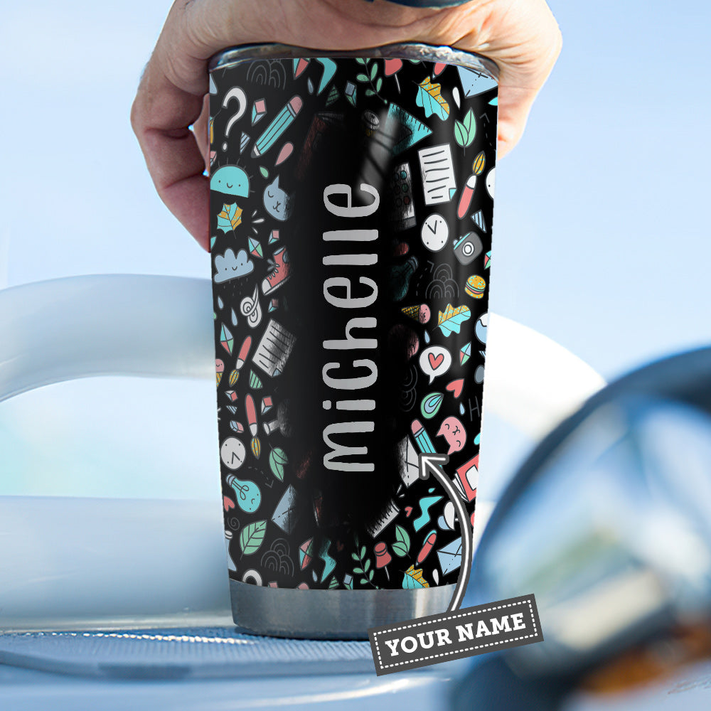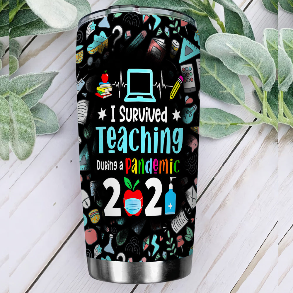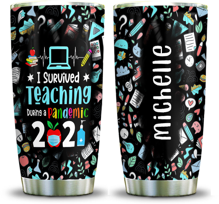 I Survived Teaching During Pandemic 2021 Teaching Pattern Teacher Tumbler Teacher Gift Personalized Stainless Steel Tumbler