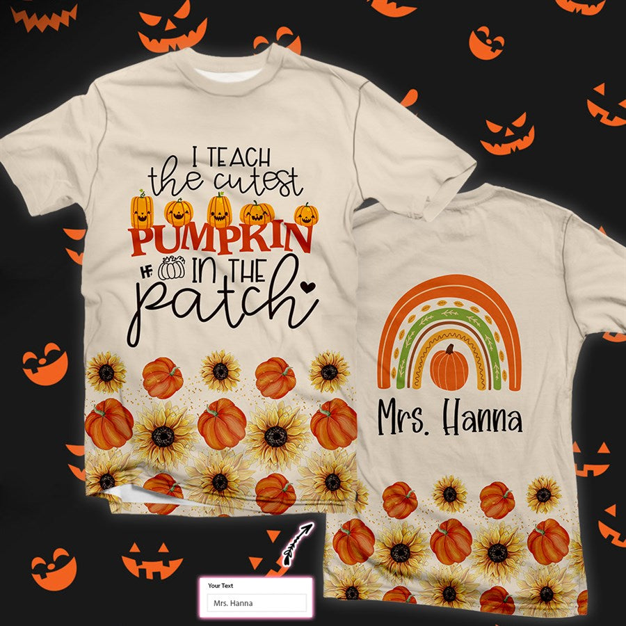 I Teach The Cutest Pumpkins In The Patch Custom All Over Print T-Shirt, Personalized Halloween Teacher Shirt