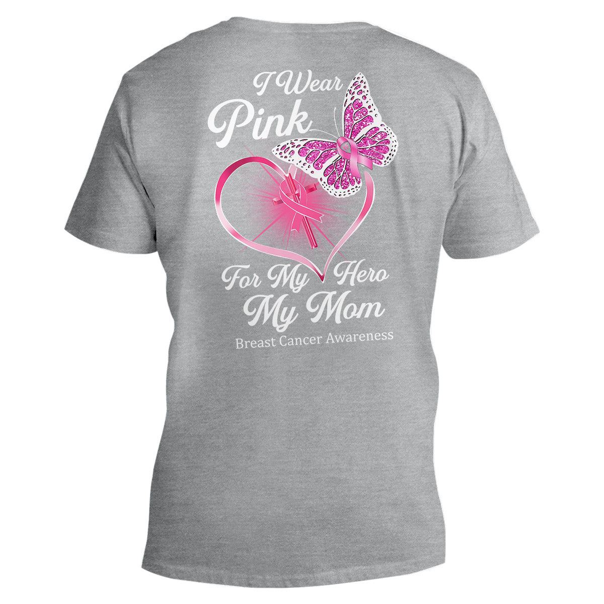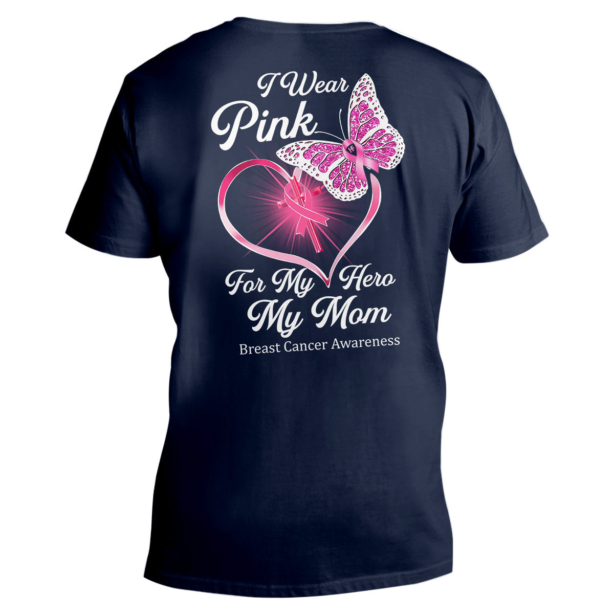 I Wear Pink For My Hero My Mom Breast Cancer Awareness, Love Heart Butterfly Unisex V-Neck T-Shirt