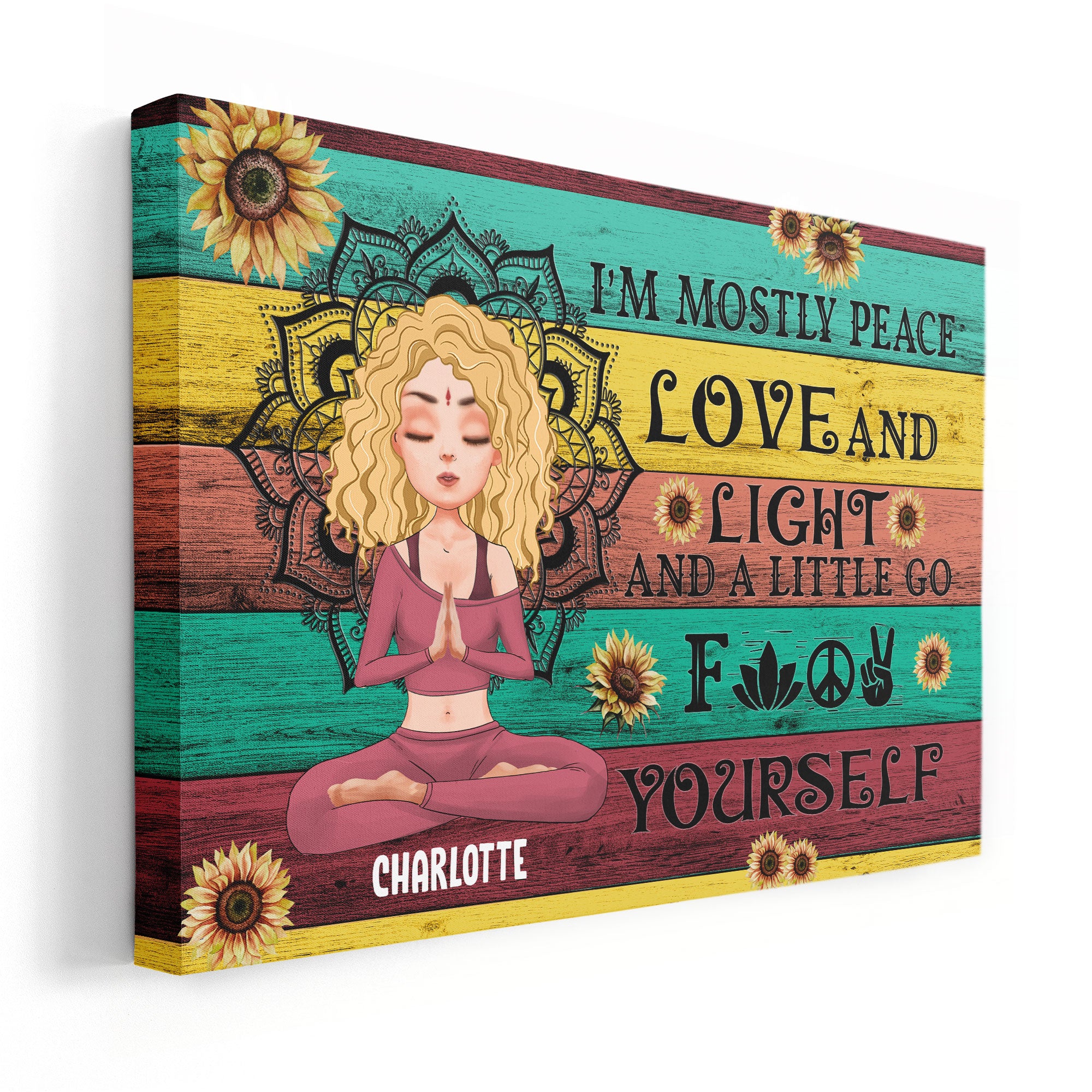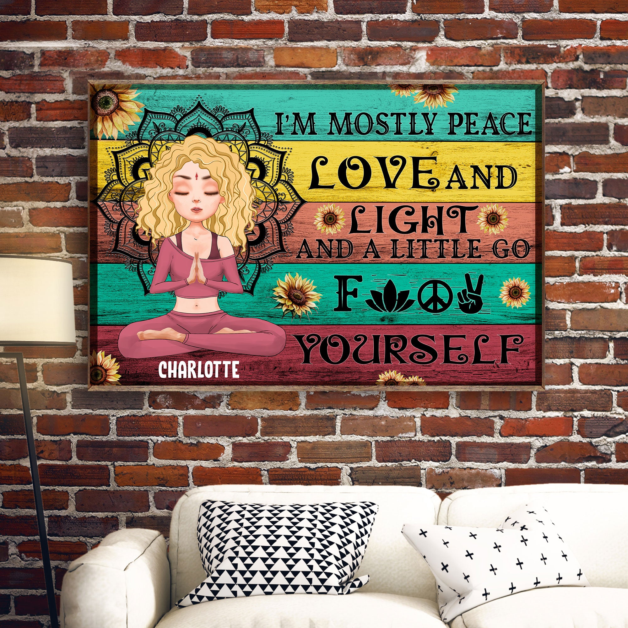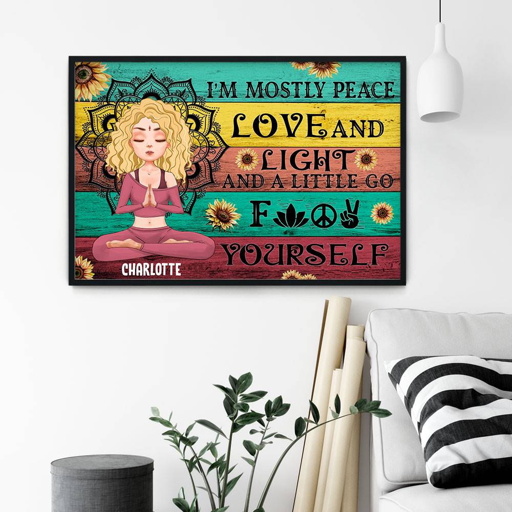 I’M Mostly Peace Love And Light – Personalized Poster/Canvas – Gift For Yoga Lover – Yoga Girl Illustration