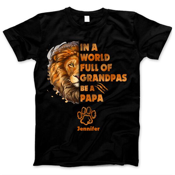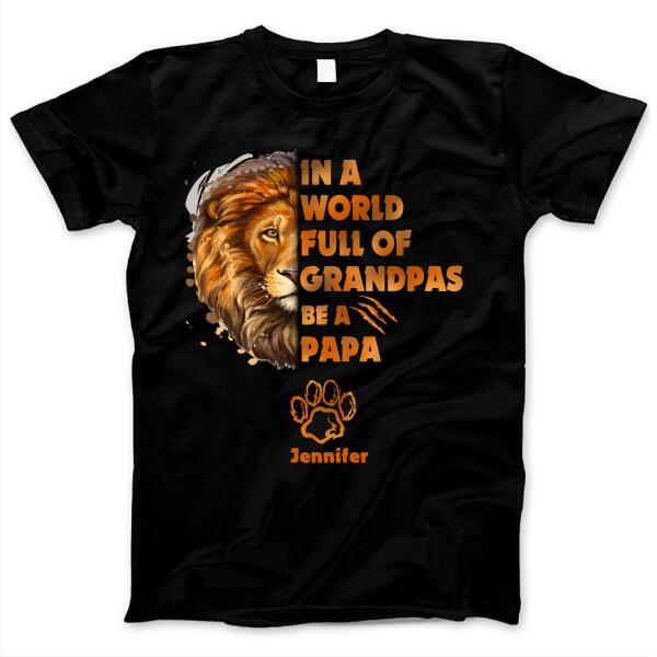 In A World Full Of Grandpas Be A Papa Lion Gift For Father’s Day Custom Name Personalized Shirt