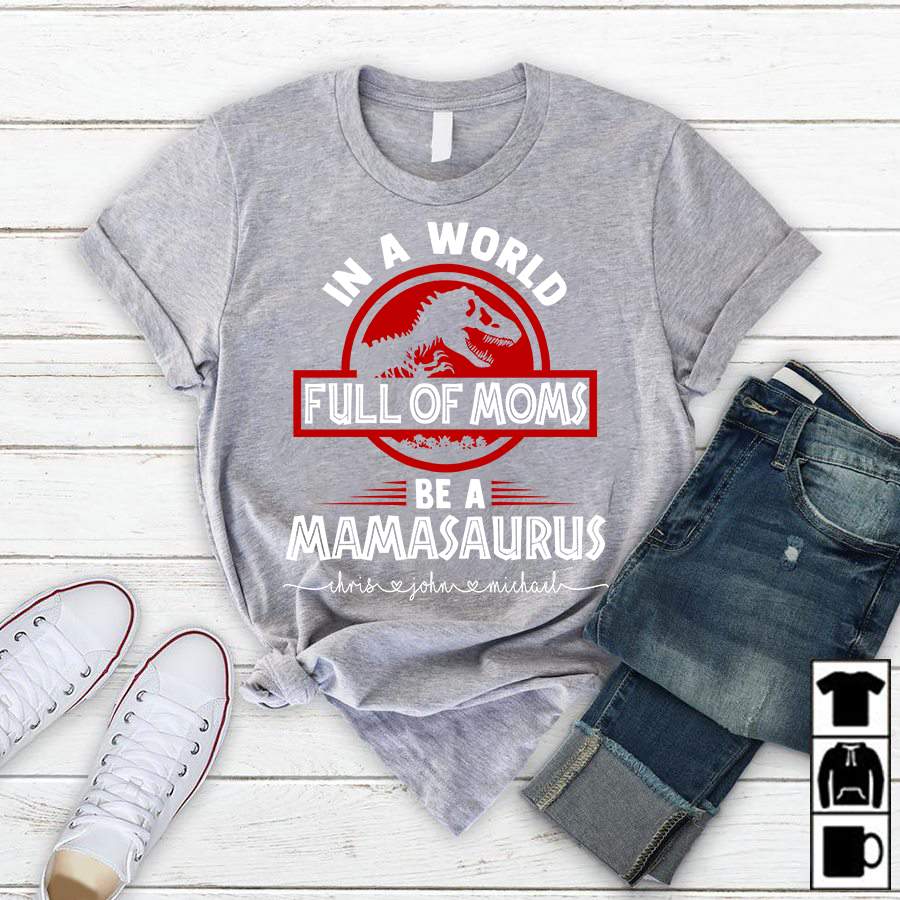 In A World Full Of Moms Be A Mamasaurus | Personalized T-Shirt