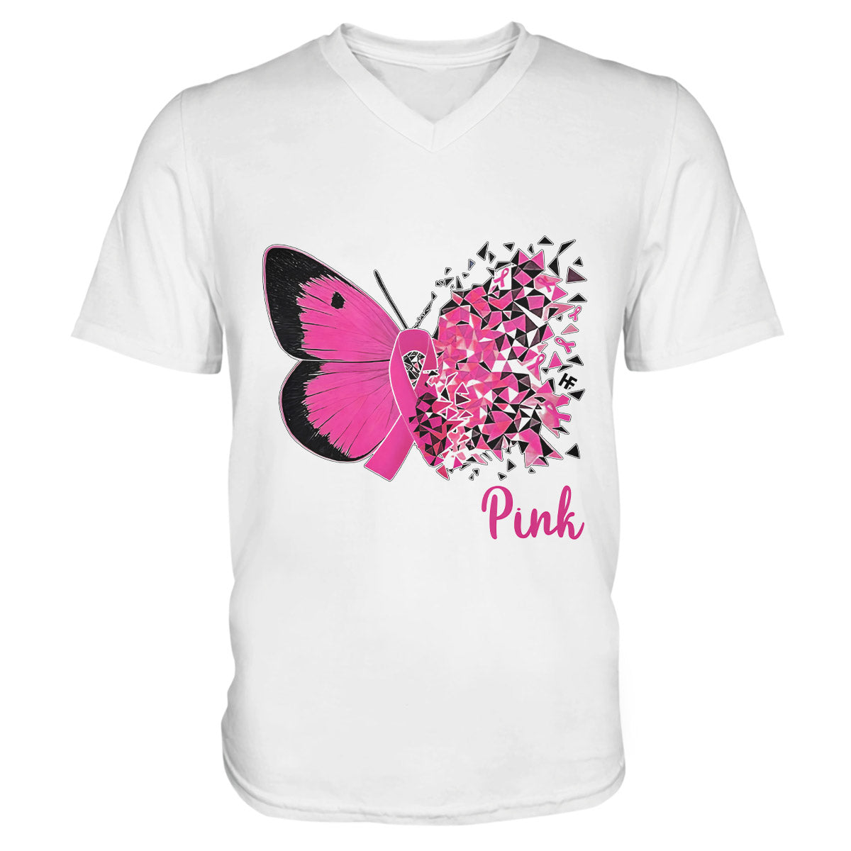 In October We Wear Pink Butterfly Breast Cancer Awareness Shirt, Breast Cancer Month Unisex V-Neck T-Shirt