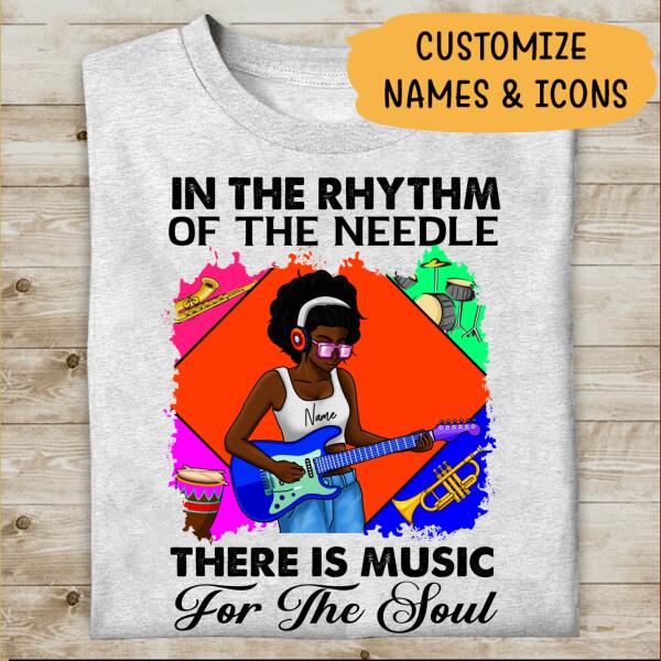In The Rhythm Of The Needle There Is Music For The Soul Personalized T-Shirt, Best Gift For Black Girls & Women