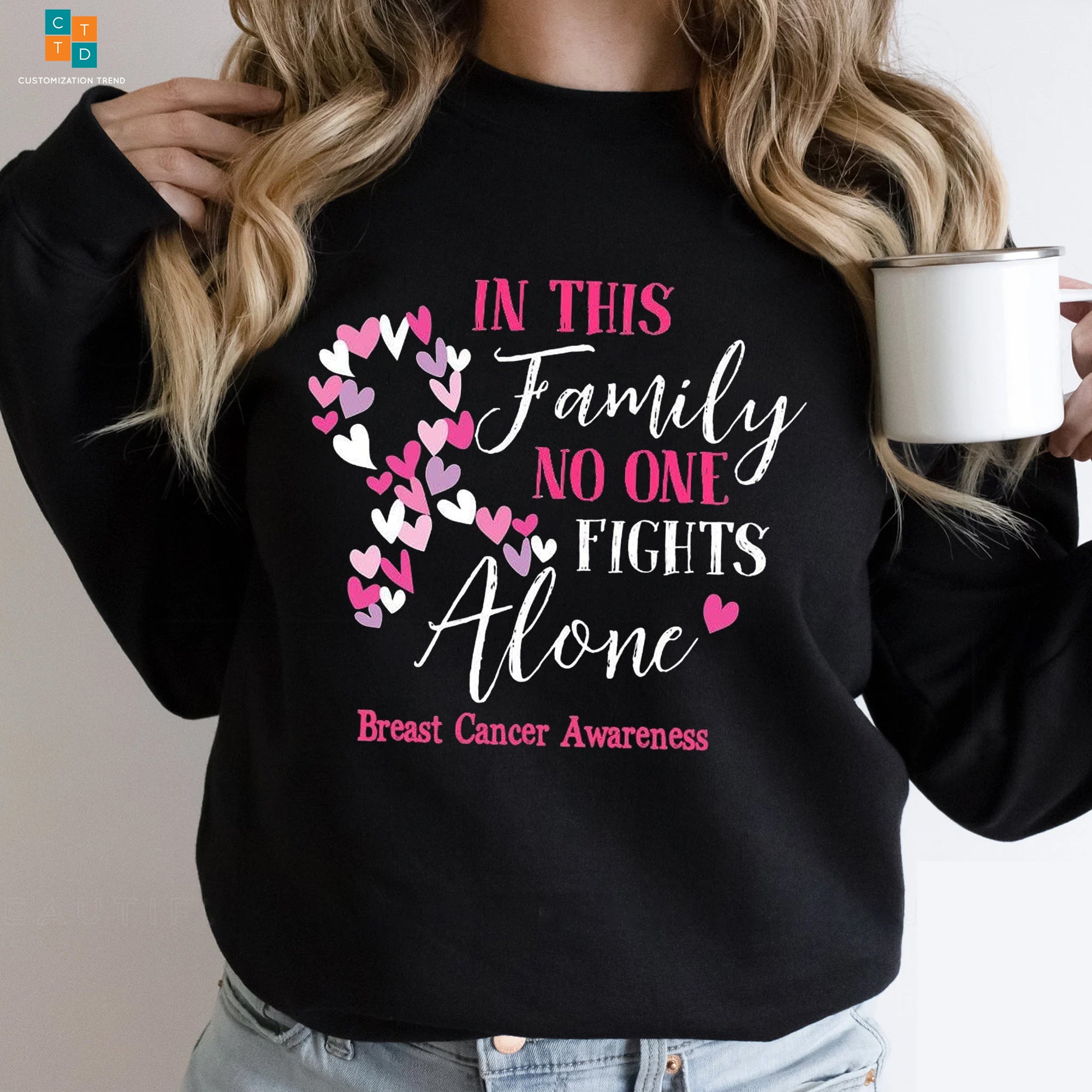 In This Family No One Fights Alone Breast Cancer Awareness Hoodie, Shirt