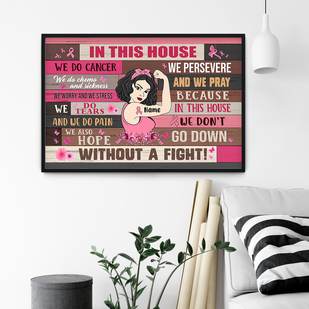 In This House We Do Cancer – Personalized Poster/Canvas – Breast Cancer Monthgift For Breast Cancer Supporters – Breast Cancer Girl